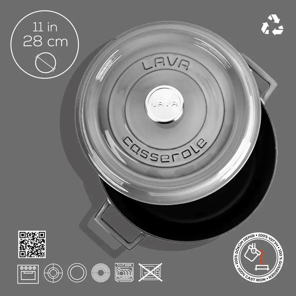 Fazék fedővel, átmérő 28 cm, űrtartalom 4,7 L, öntöttvasból, Lava márka