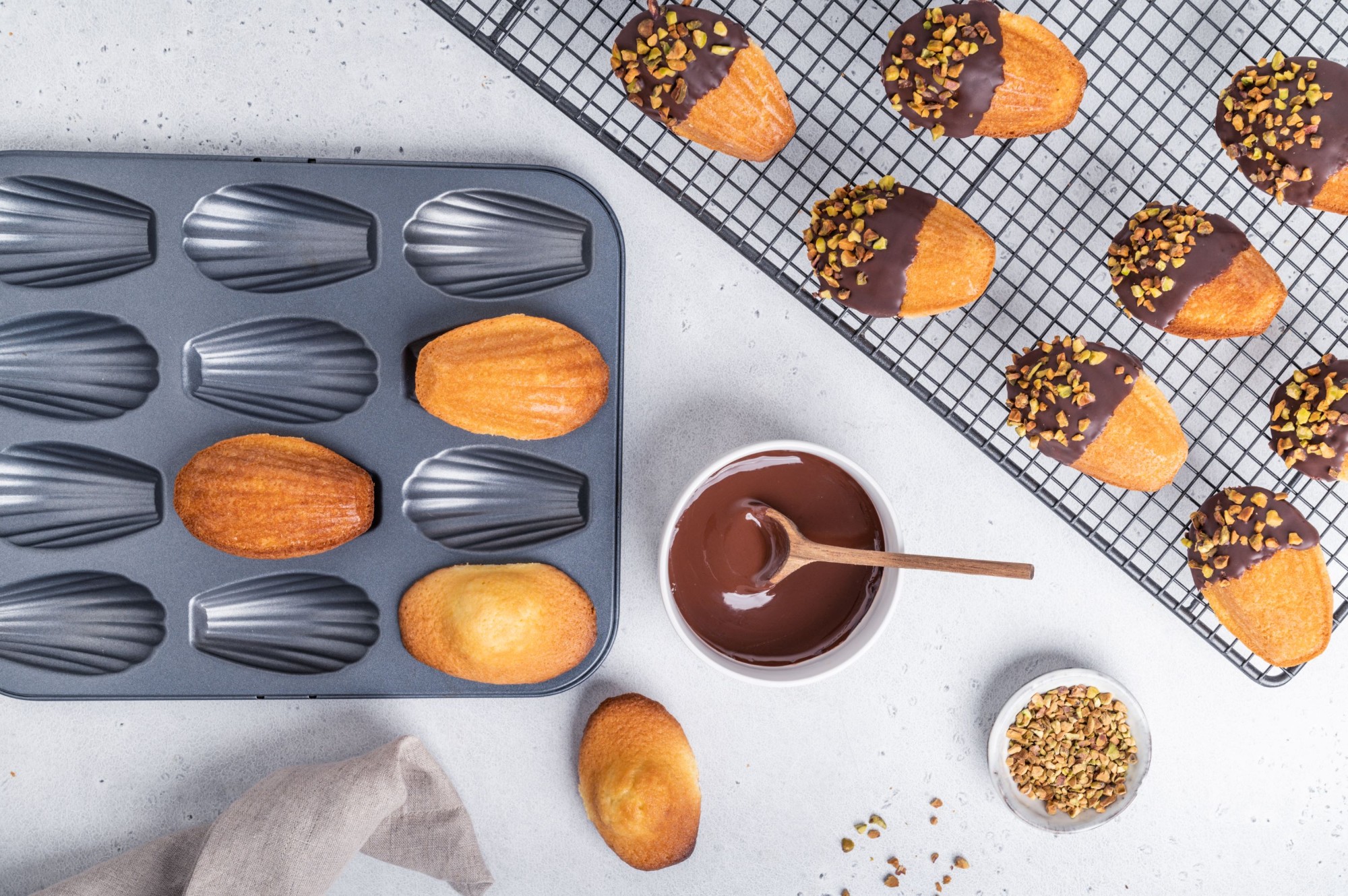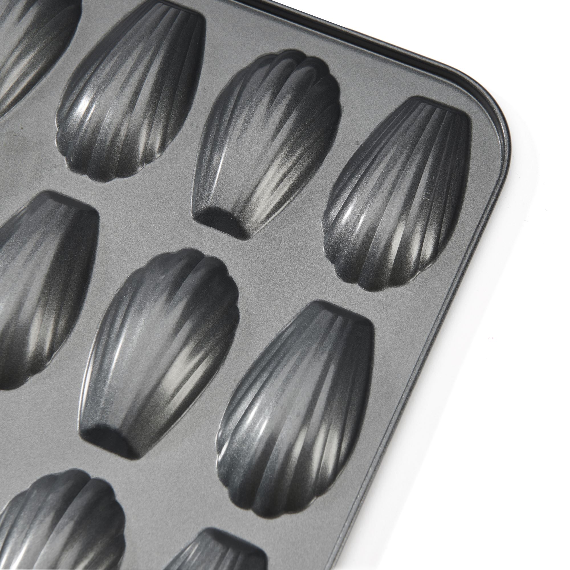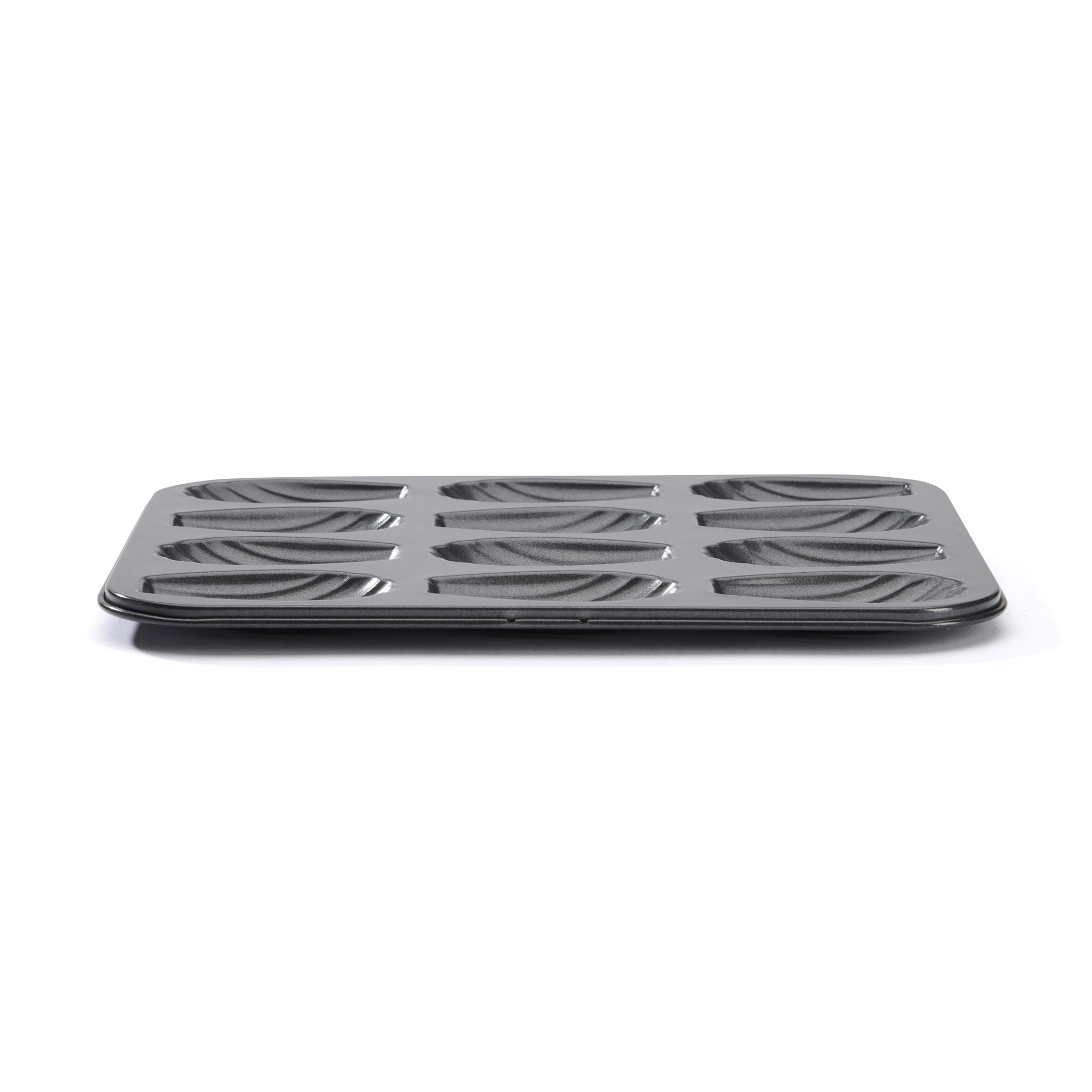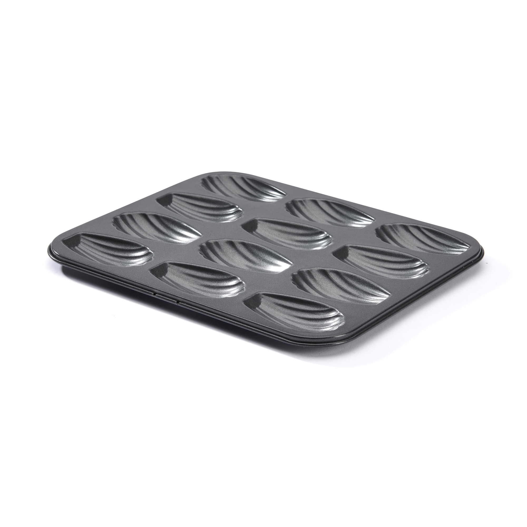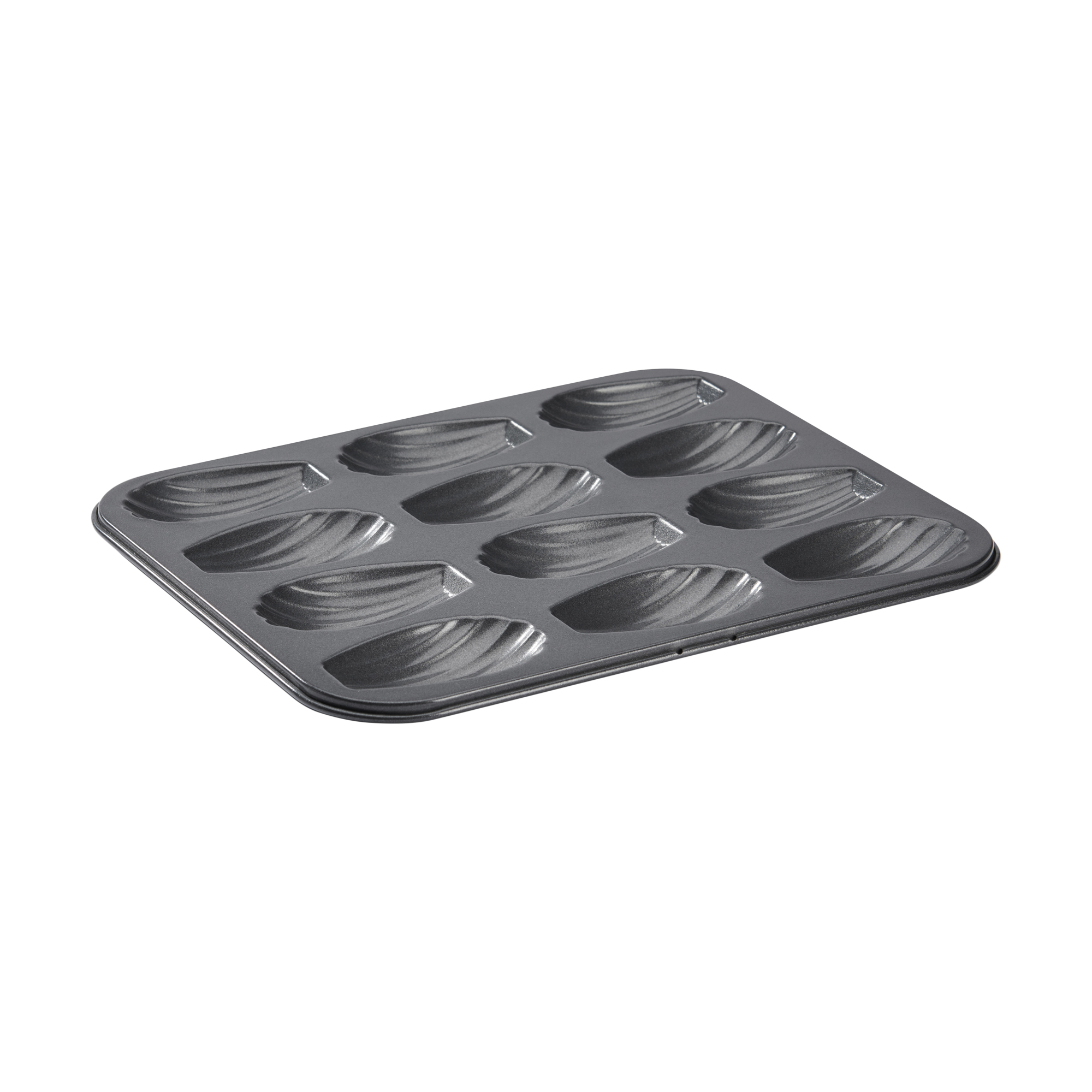 12 rekeszes madeleine sütőforma, acélból, tapadásmentes bevonattal, de Buyer márkájú.