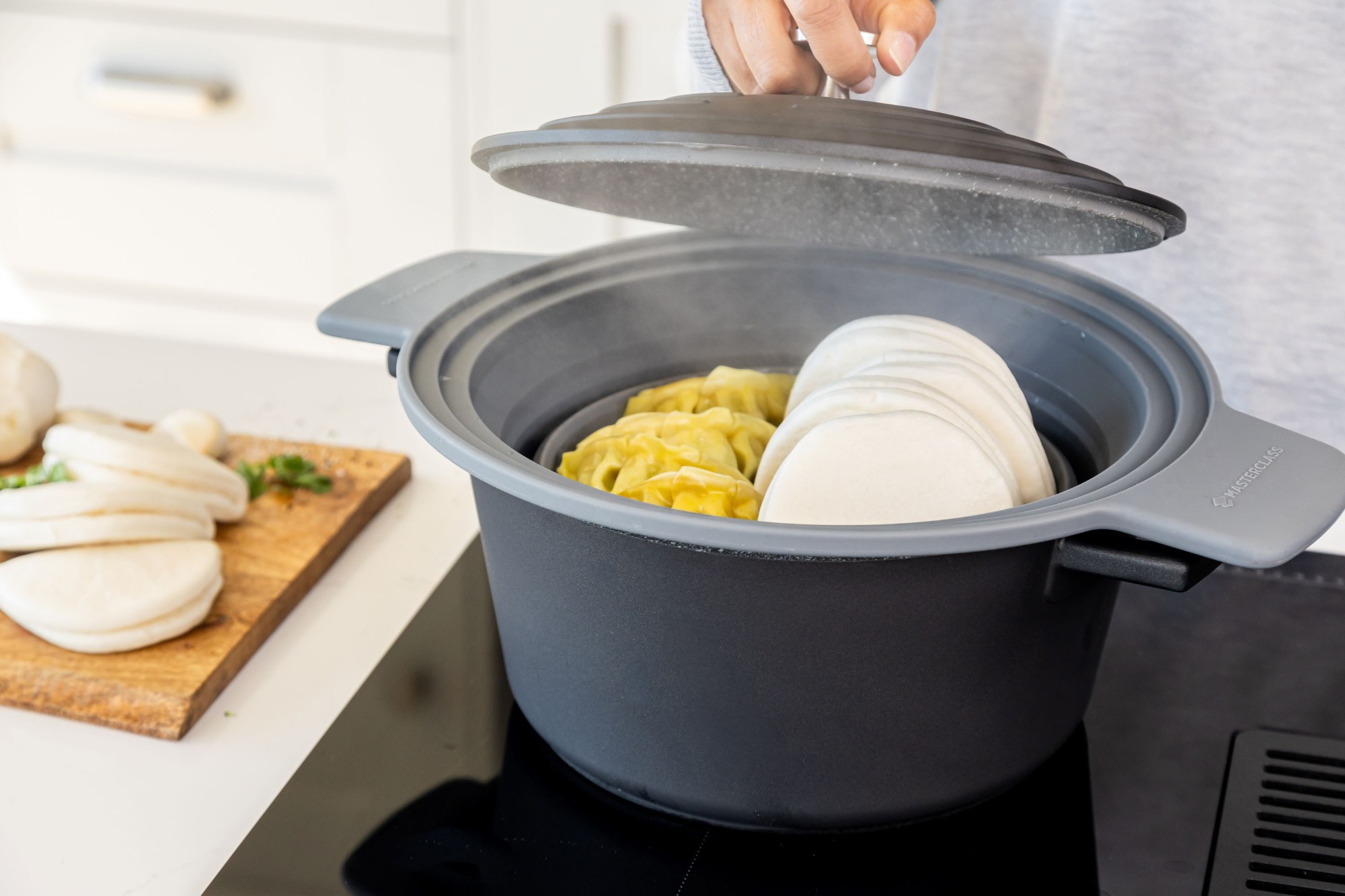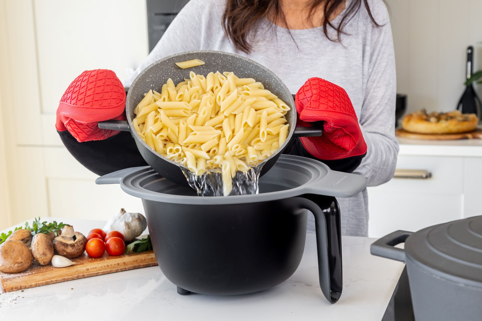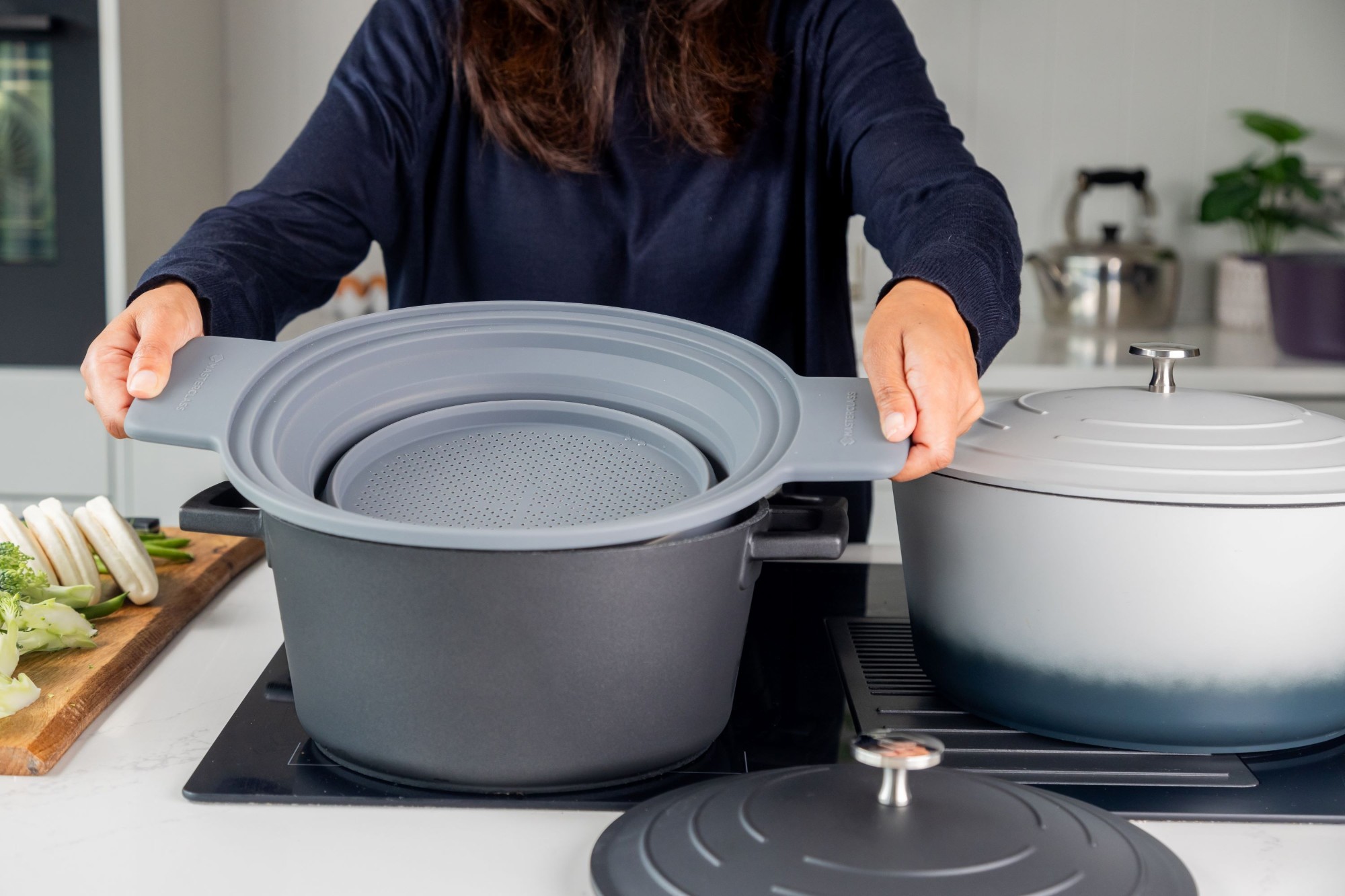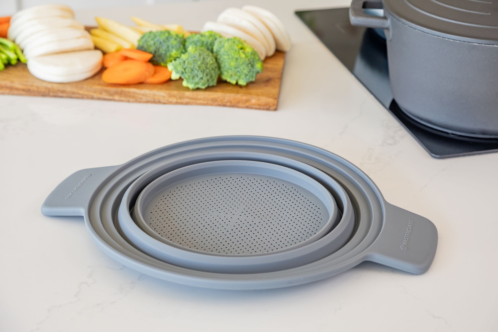 A szűrőt úgy tervezték, hogy illeszkedjen MasterClass öntött alumínium edényekhez, valamint más, 24-30 cm átmérőjű edényekhez.