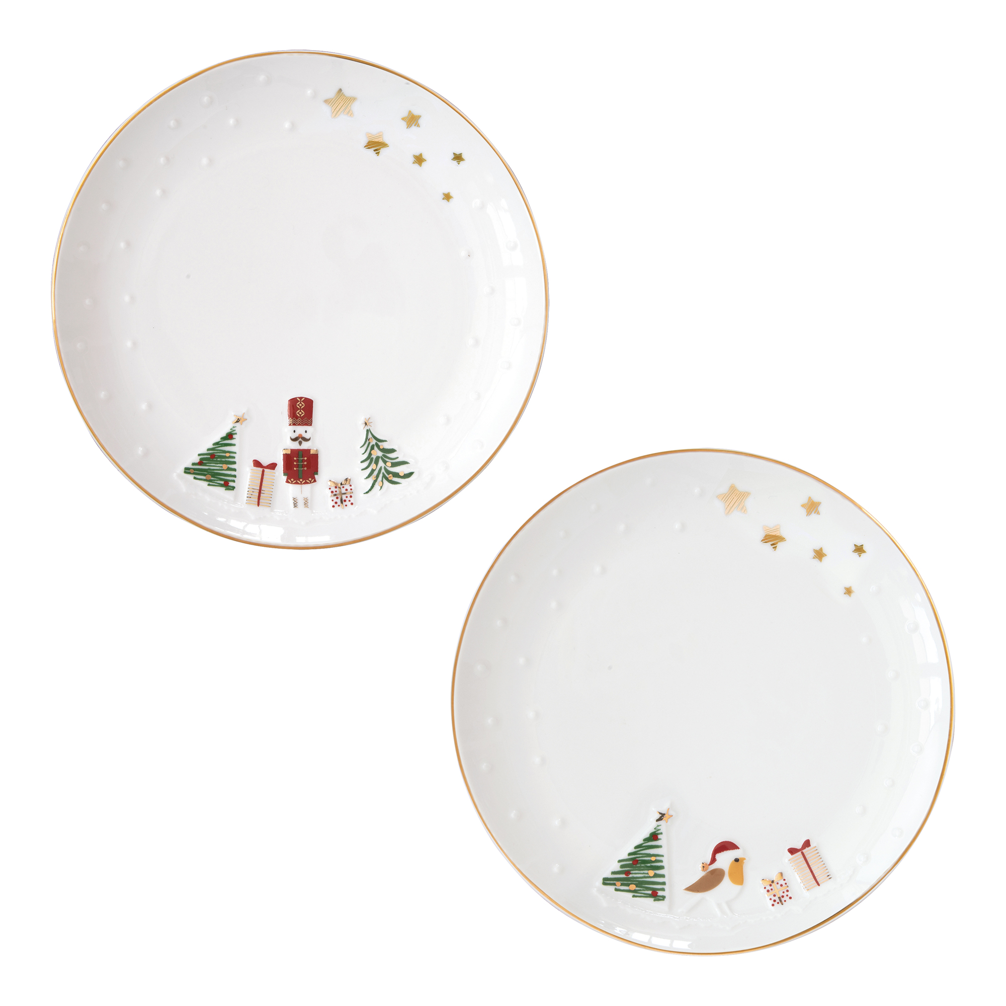 A tányérok dombornyomott mintával és tematikus motívumokkal rendelkeznek, amelyek célja, hogy a karácsony varázsát hozzák otthonodba.