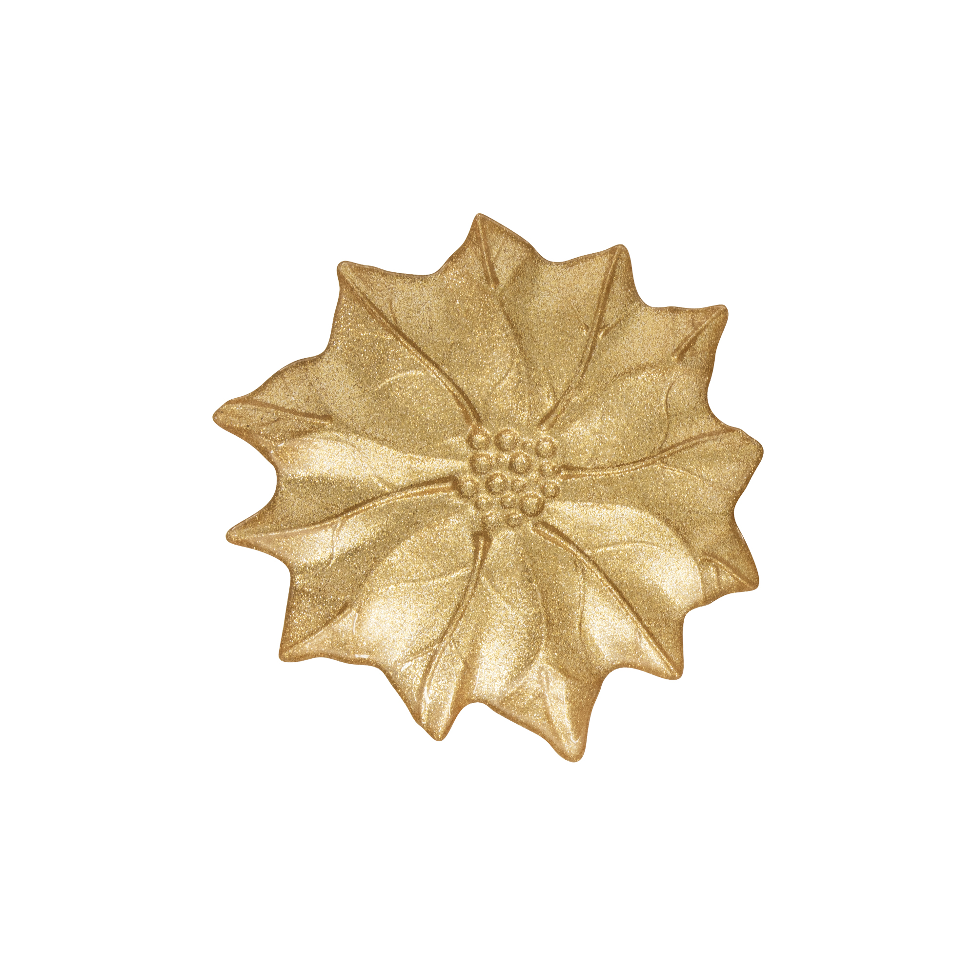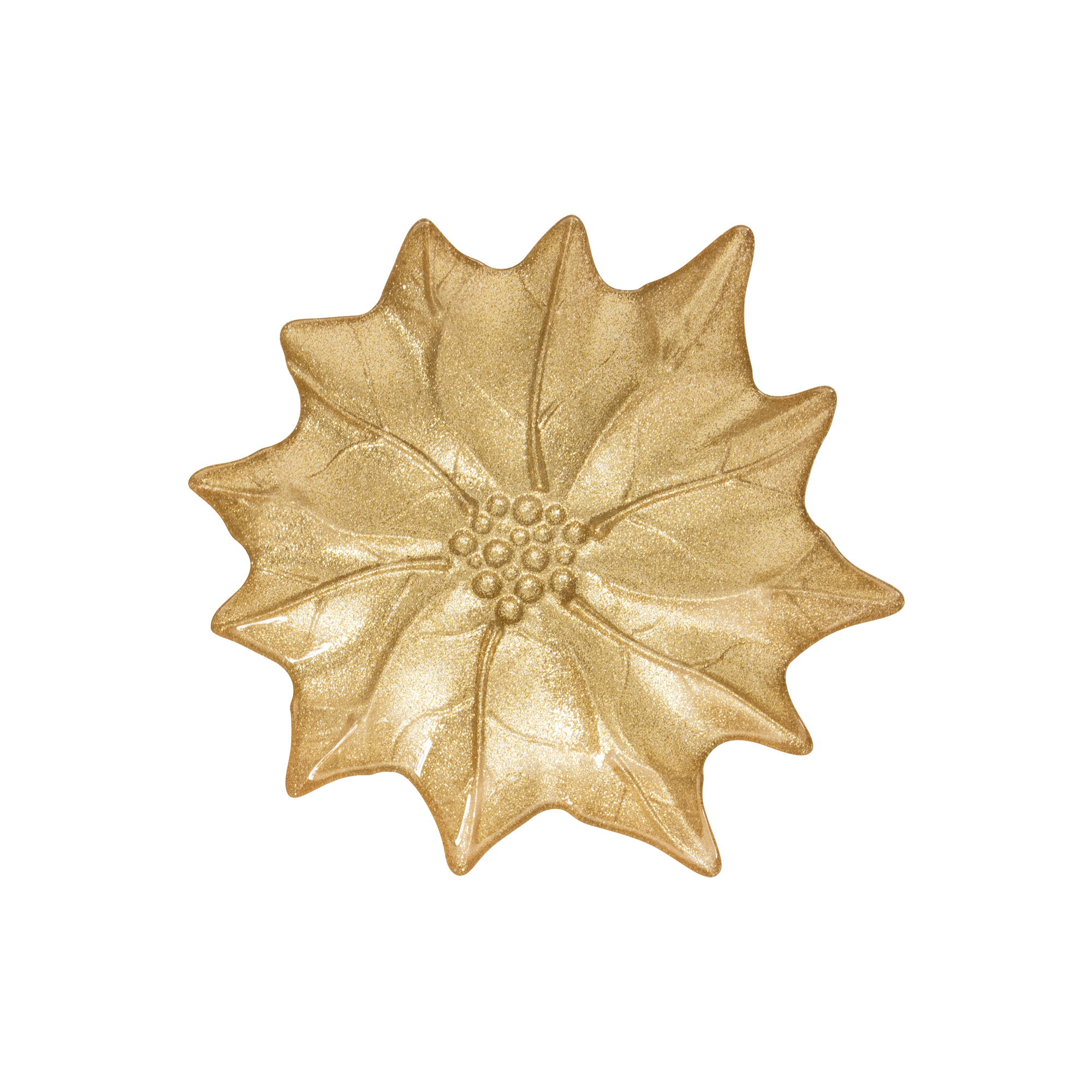A különböző átmérőjű, Nuova R2S márkájú, formázott és gondosan díszített, a szimbolikus karácsonyi virágot ábrázoló arany üvegtányérok igazán elegánsak és csillogást visznek az ünnepi asztalra. A tányérok kombinálhatók a White Elegance kollekció vagy más Nuova R2S ünnepi kollekciók más edényeivel.