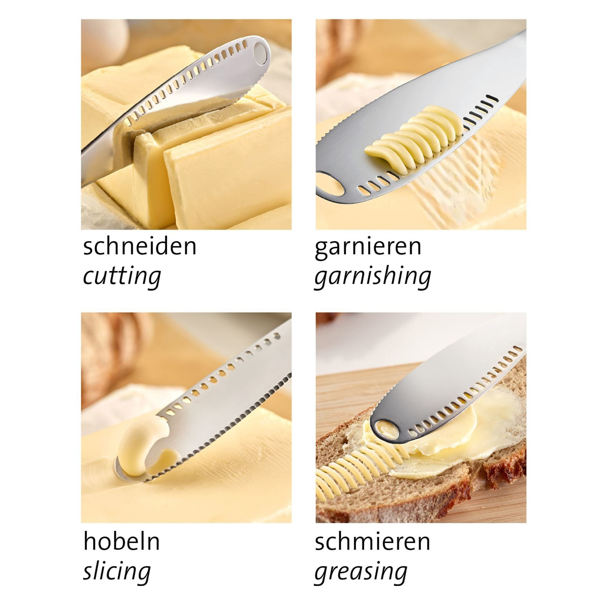 A kések speciális kialakításúak, rácsos résekkel és fogazott éllel vannak ellátva. Alkalmasak vaj vágására és szórására, valamint vajdíszek készítésére.