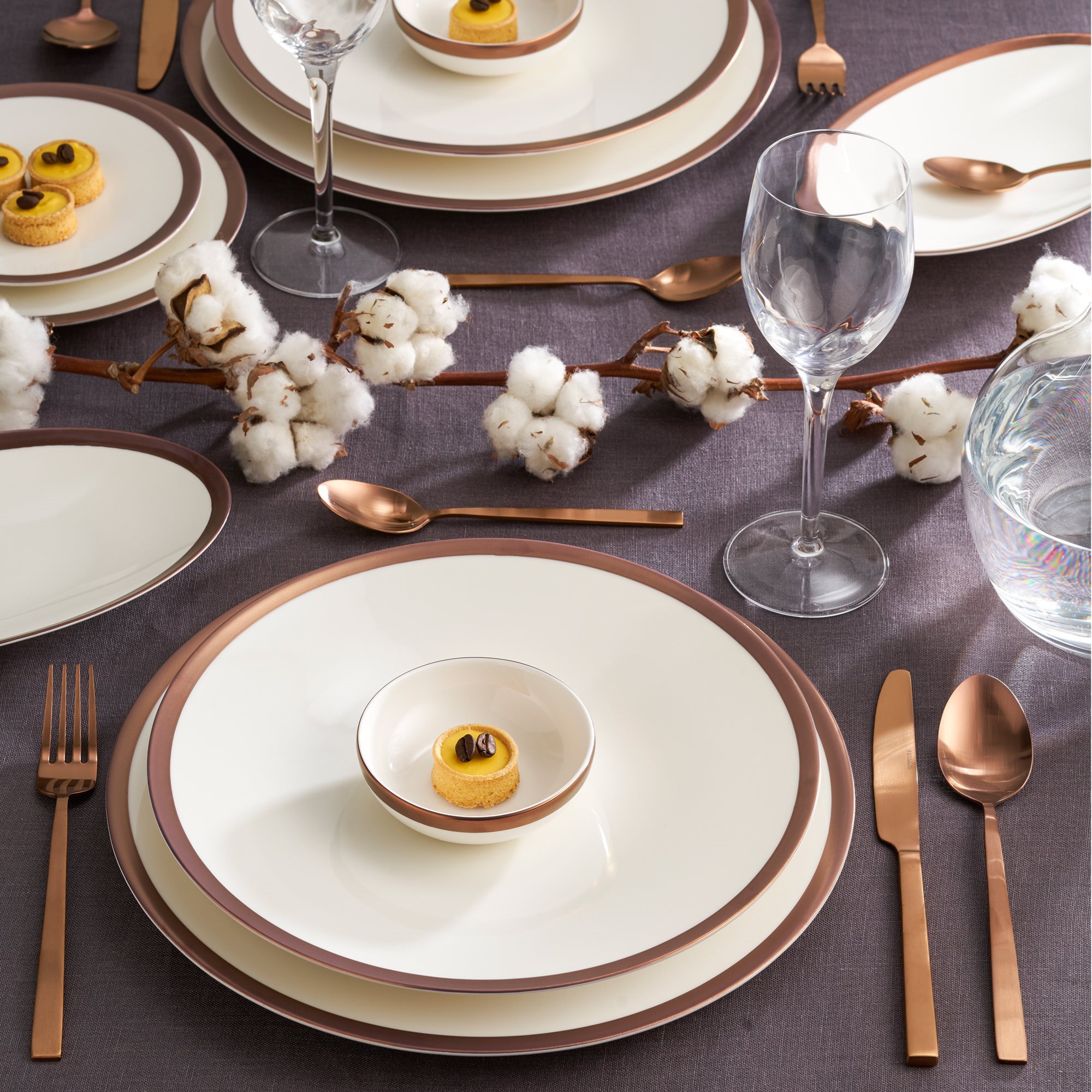 A minimalista dizájnú Copper Line kollekció elegáns alternatíva azok számára, akik előnyben részesítik az egyszerű színeket és az egyszerű mintákat, amelyek megőrzik a hagyományos vonalakat. A Porland márka speciális receptúrája alapján készült Alumilite porcelán szerkezetébe a kollekcióspecifikus rézszín integrálódik.