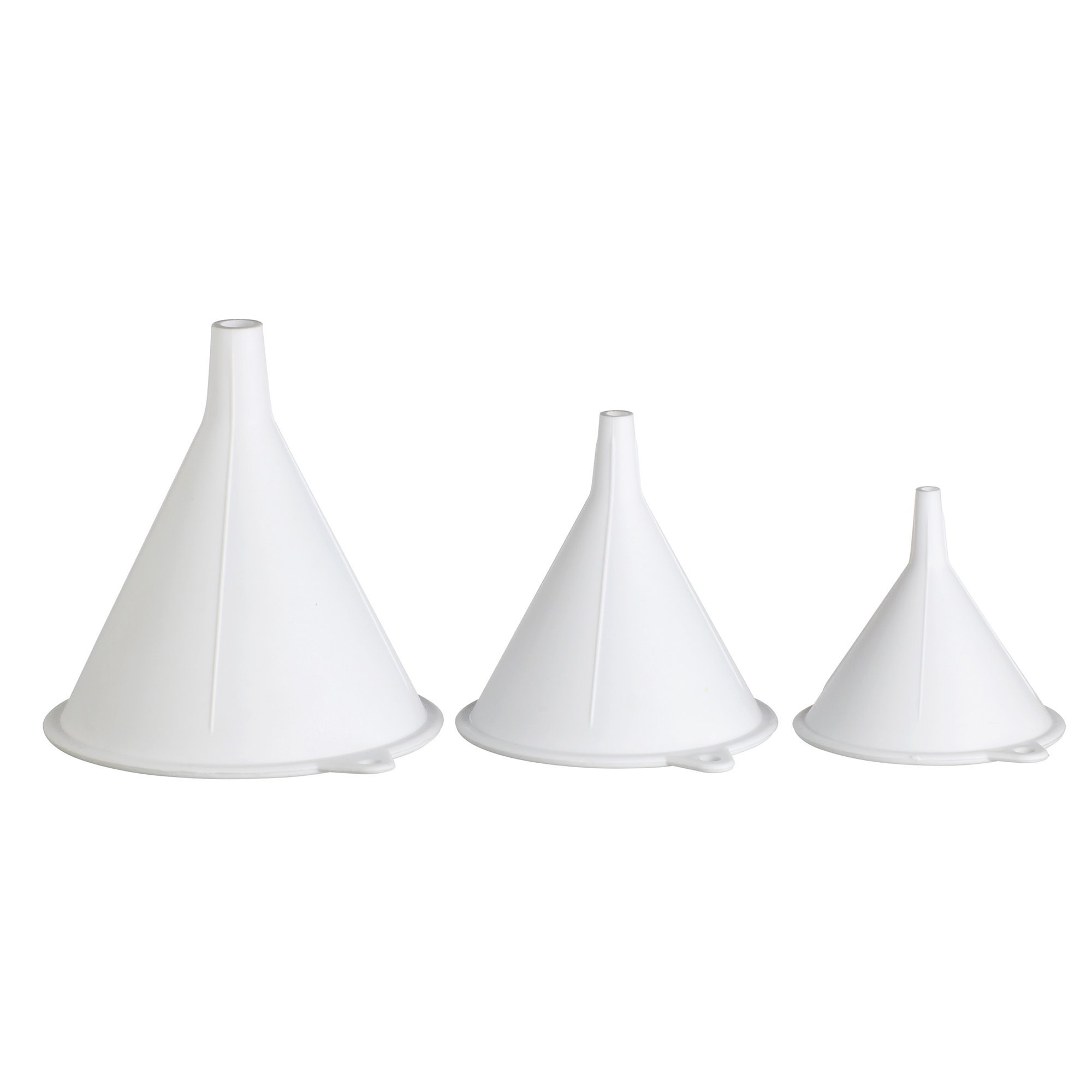 3 darabos Kitchen Craft tölcsérkészlet, átmérői 6.5, 8 és 10 cm, anyaguk polipropilén.