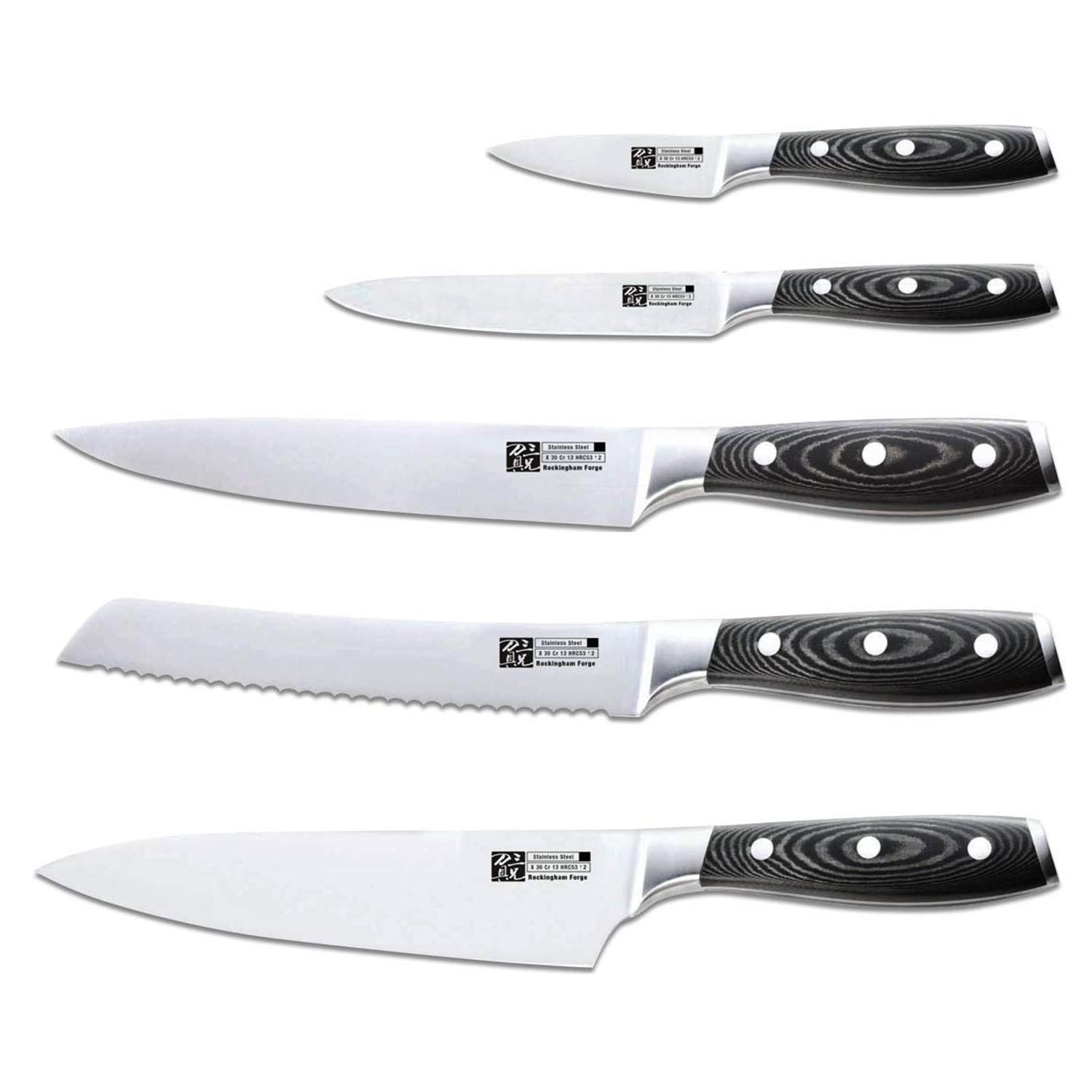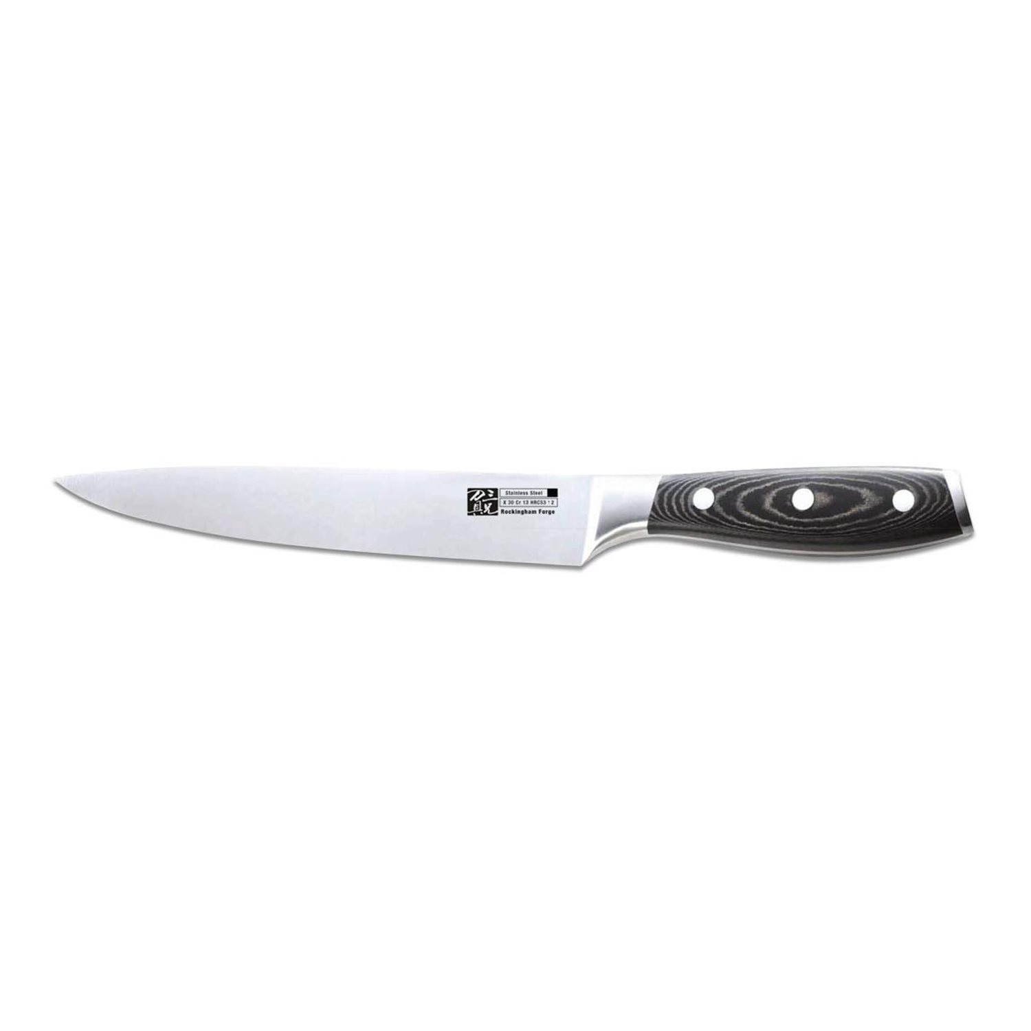 A kések pengéje kiváló minőségű német rozsdamentes acél, nyelei szegecseltek, ergonomikus kivitelezéssel, amely a könnyű használatot szolgálja.