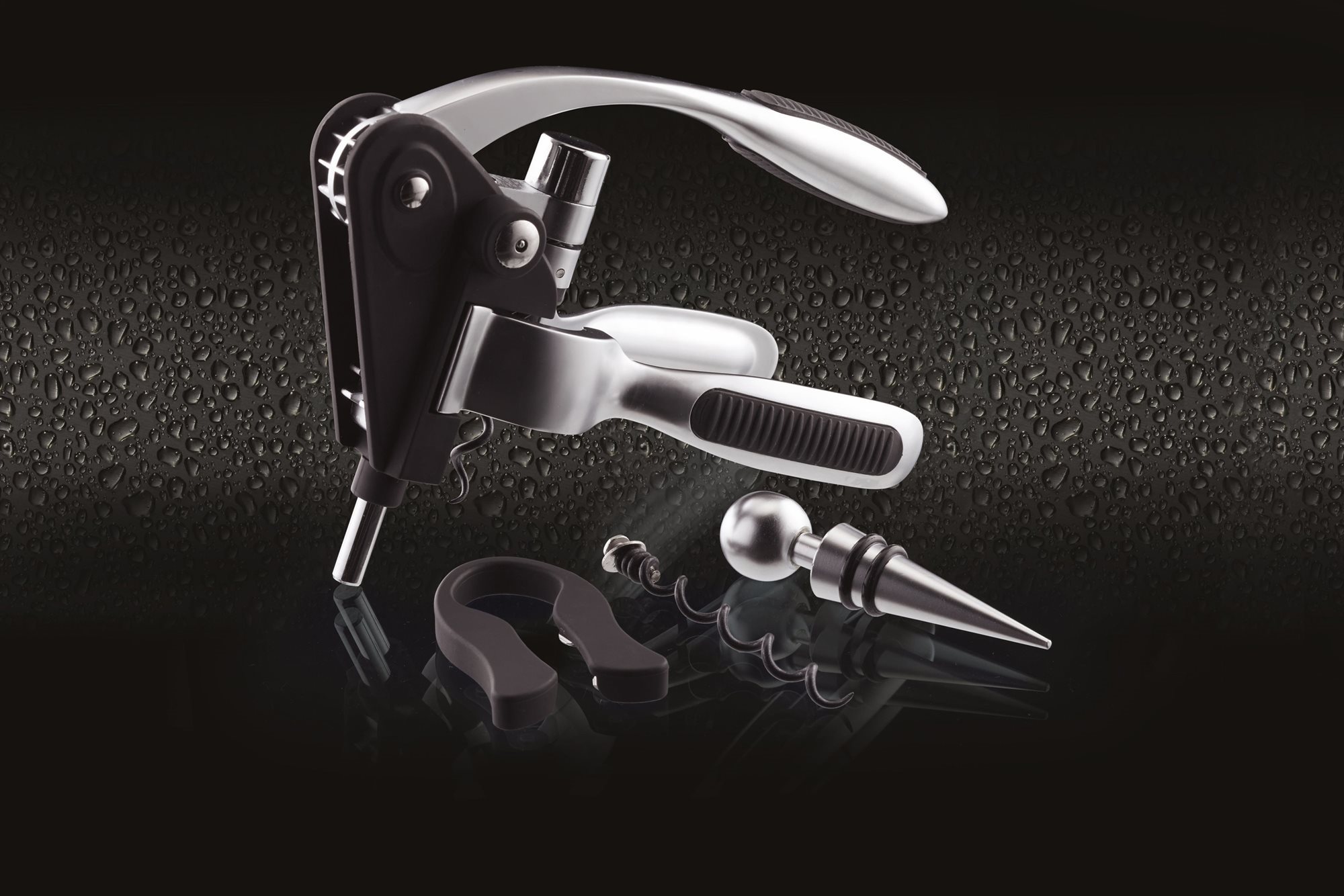 5 darabos BarCraft elegáns sommelier készlet, anyaga rozsdamentes acél és műanyag, tartalma: