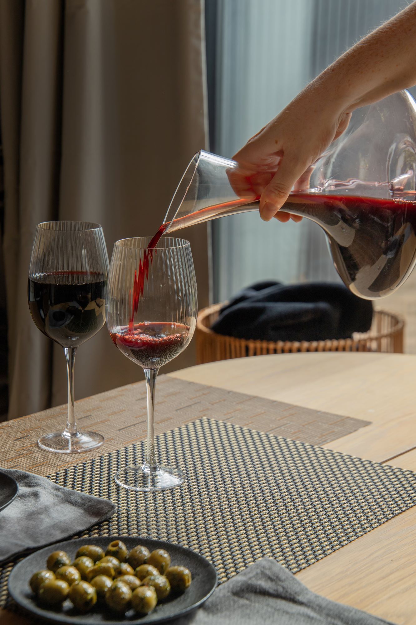 Ez az elegáns boros dekanter lehetővé teszi, hogy otthona kényelméből élvezze a bor felszolgálásának minőségét, mintha egy étteremben tenné. A kézzel készített dekanter keskeny nyakkal és gyönyörűen hajlított kifolyóval rendelkezik, amely széles és ívelt alapban folytatódik. Ezek az egyszerű tulajdonságok lehetővé teszik, hogy a dekanter felfedje a bor szerkezetében korábban megbúvó illatokat és ízeket, ami a finomabb és összetettebb borok élvezetét eredményezi.