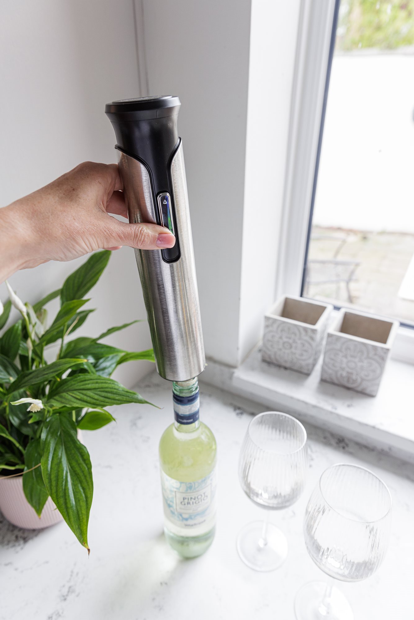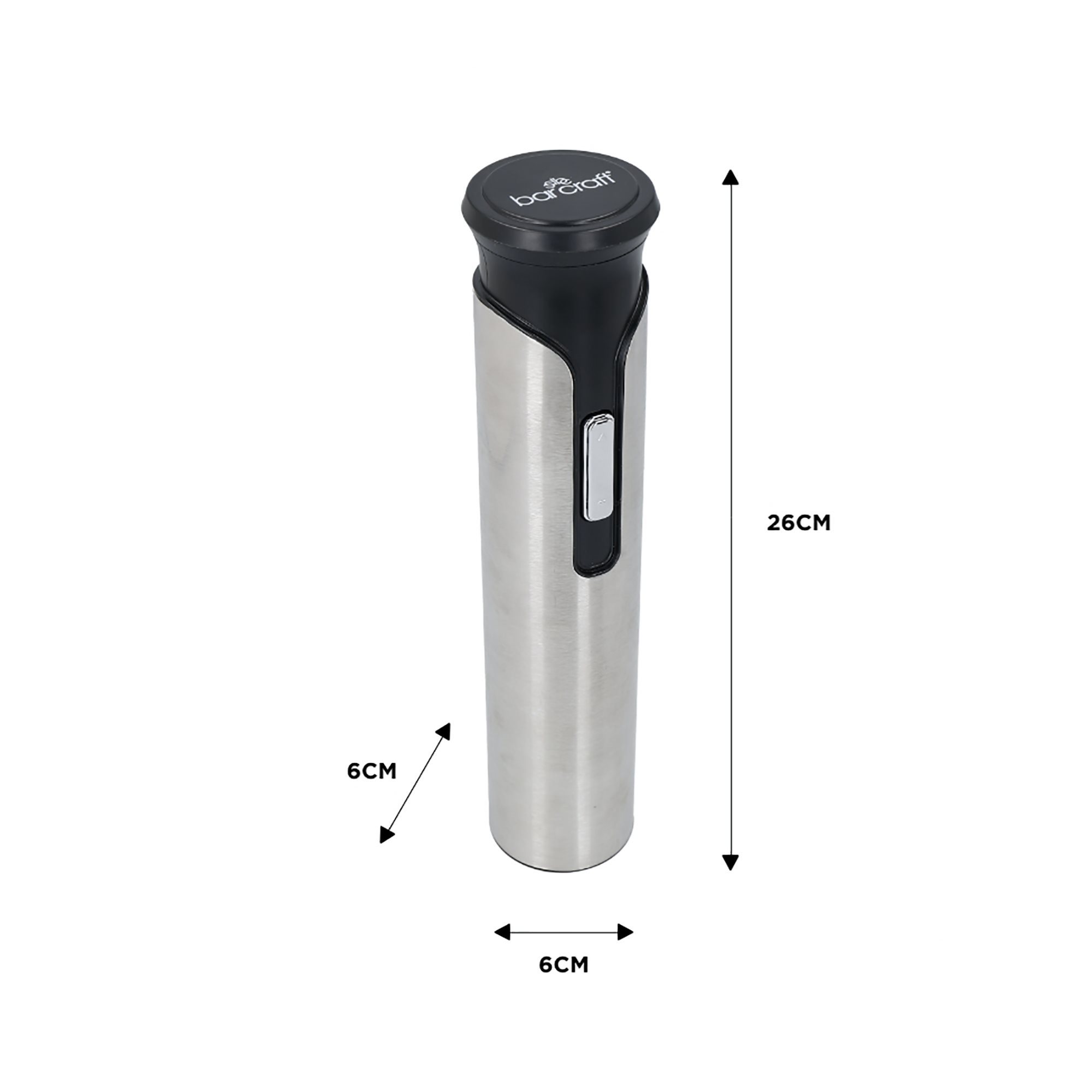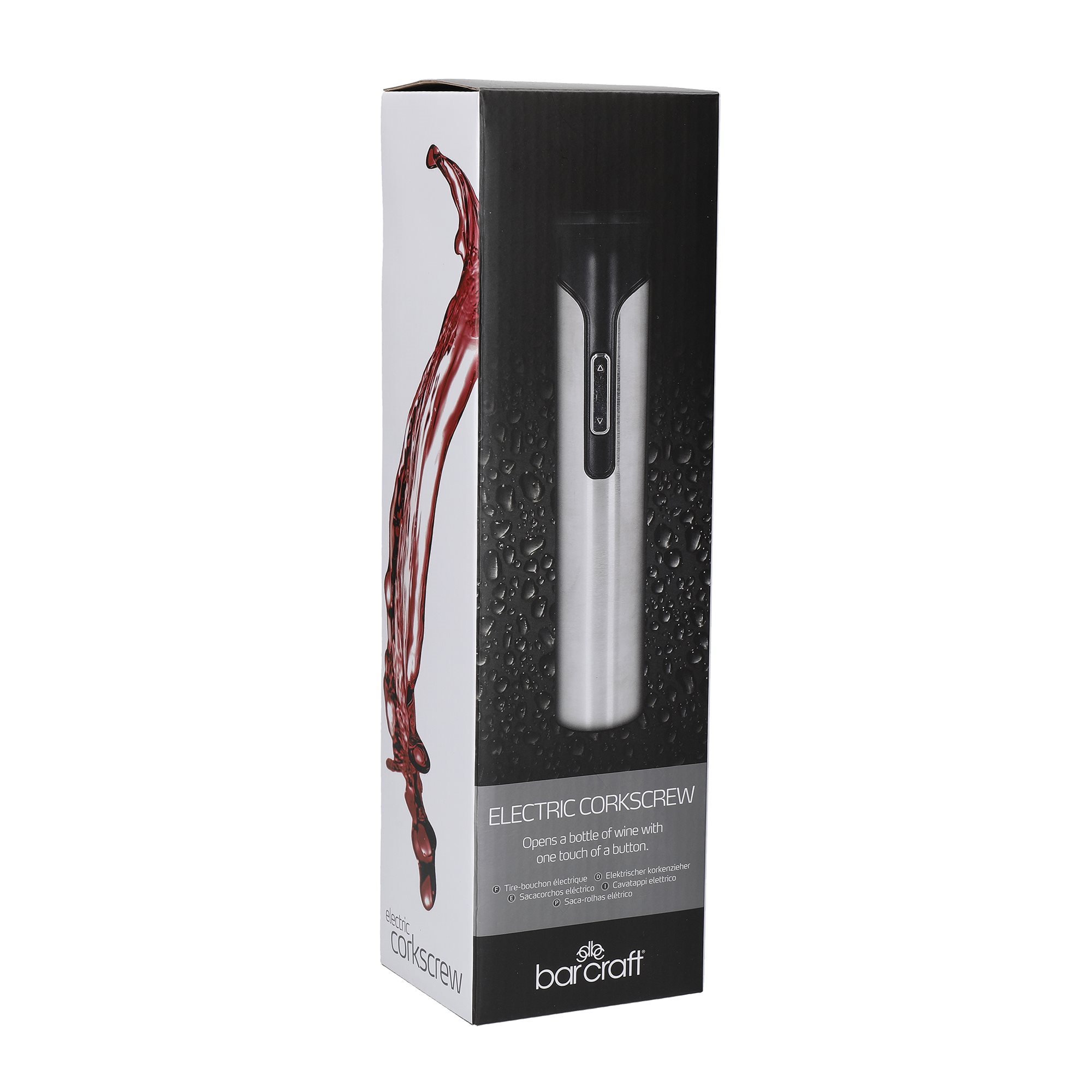 A BarCraft által gyártott , rozsdamentes acélból készült elektromos dugóhúzó gyorsan és könnyedén, egyetlen gombnyomással eltávolítja a borosüveg dugóit. Rendkívül könnyen használható, és csak egy kézzel kezelhető - egyszerűen helyezze a palack fölé, és nyomja meg az alsó gombot a parafa tiszta kihúzásához, nem hagyva maradványokat.
