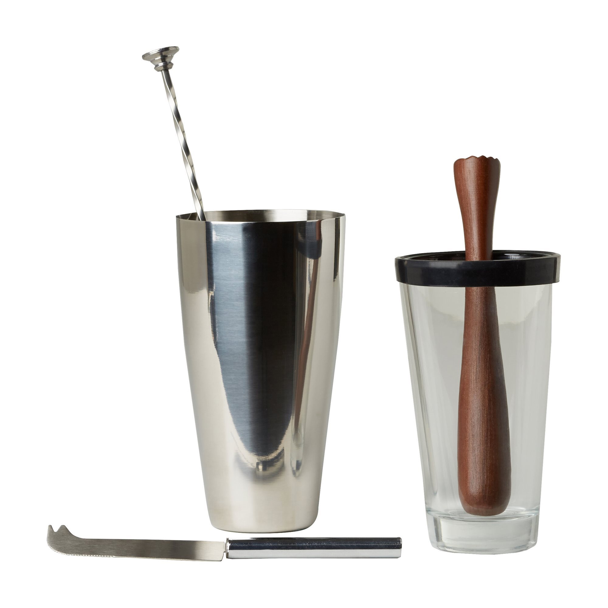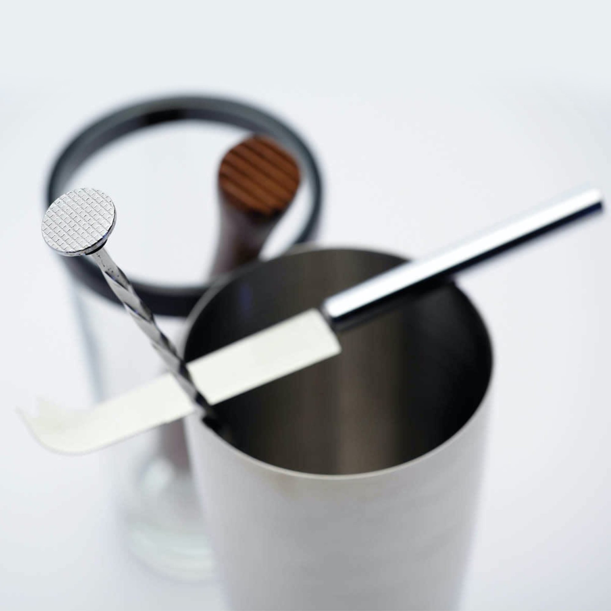 - rozsdamentes acél shaker, űrtartalma 400 ml;- keverőpohár;- rozsdamentes acél hosszú nyelű keverőpohár;- rozsdamentes acél kés;- fa törő;- mojito recept.
