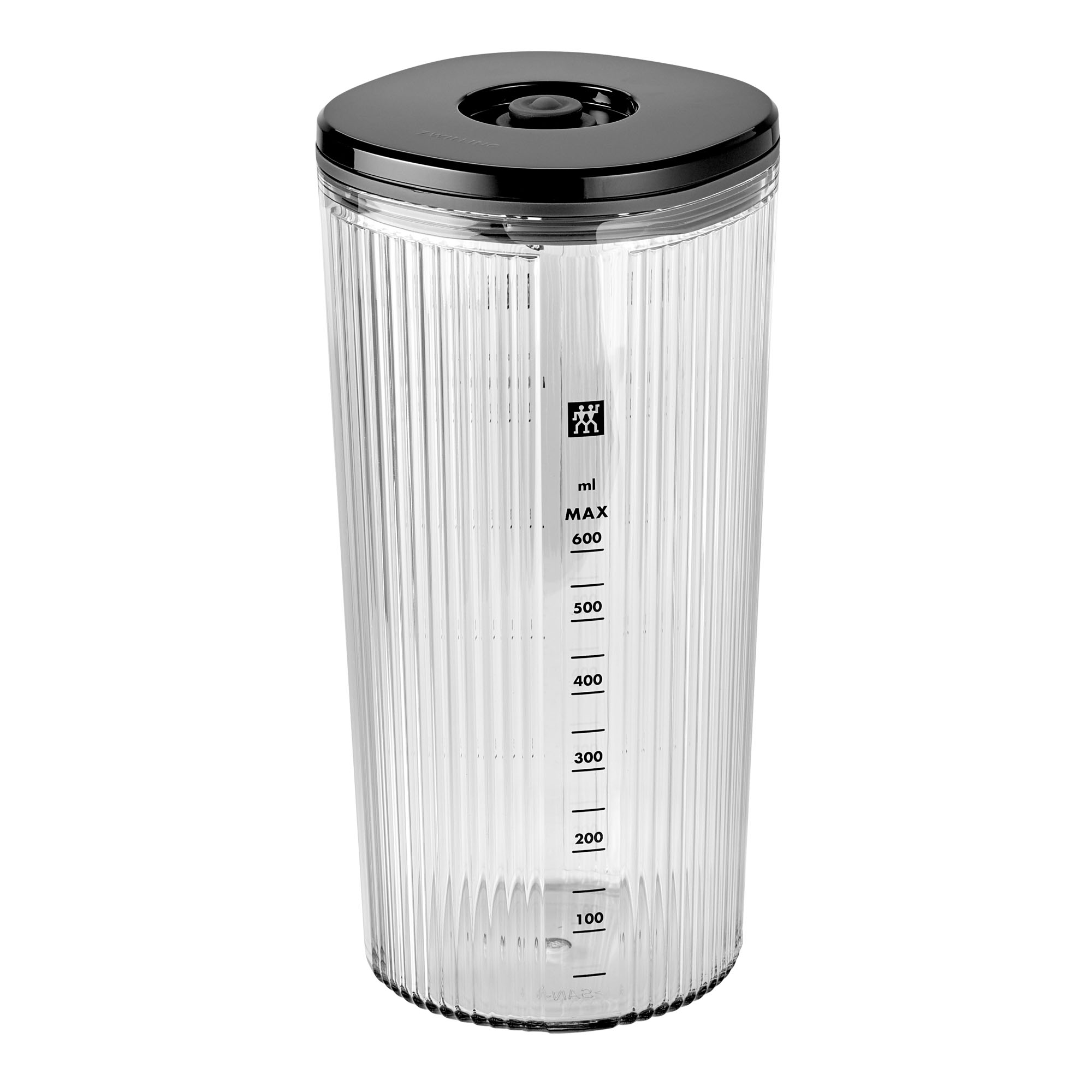 A BPA-mentes műanyag főzőpohár 600 ml-es űrtartalommal rendelkezik, és a ZWILLING FRESH & SAVE rendszerrel kompatibilis vákuumfedéllel rendelkezik, így reggel elkészítheti a szószokat, vákuumzárhatja őket, és később frissen fogyaszthatja őket. *
