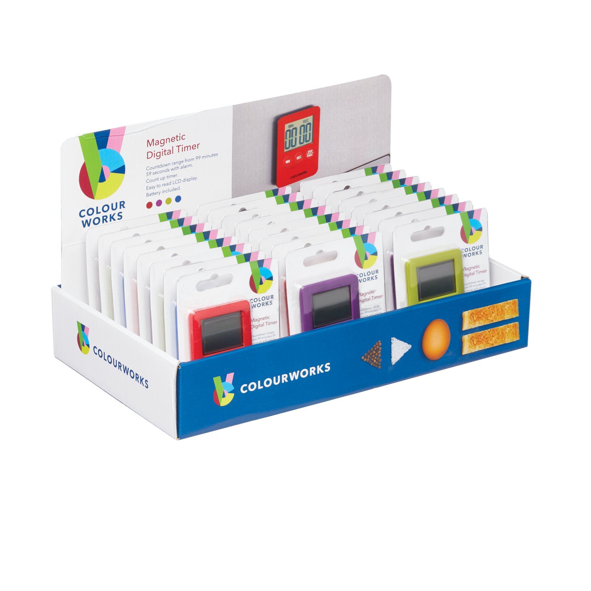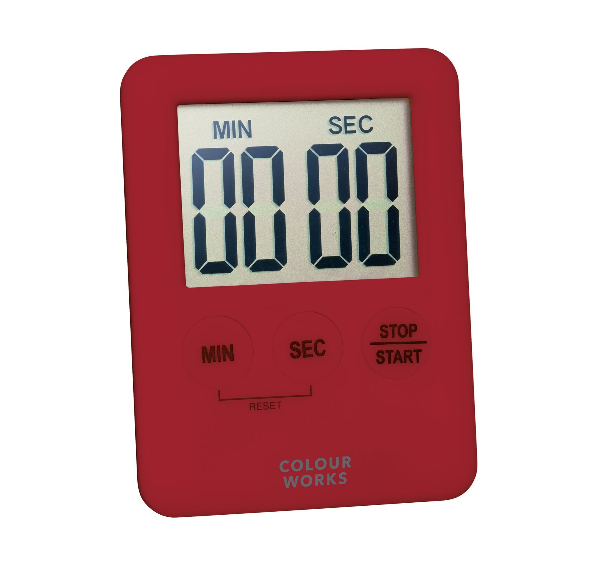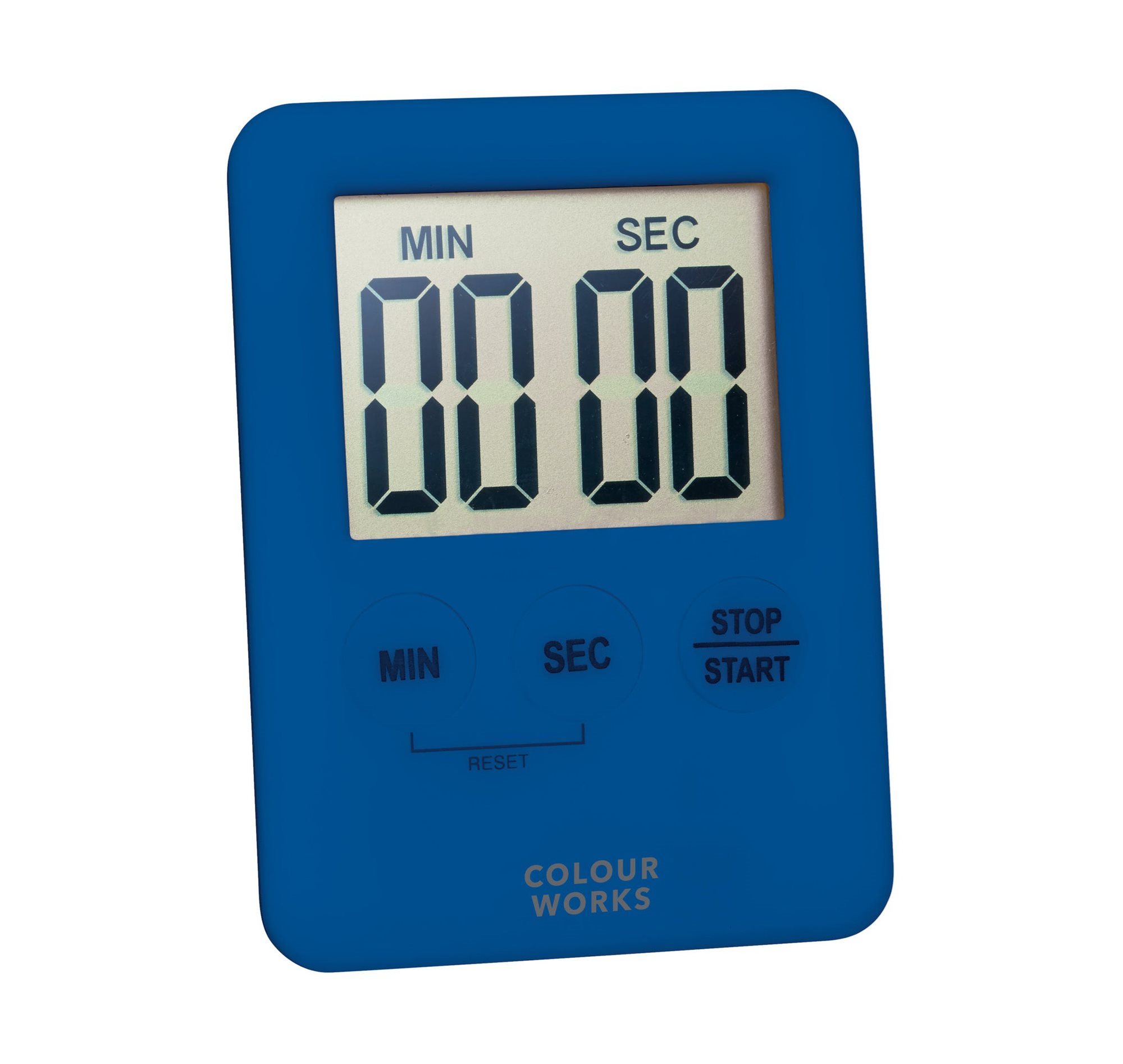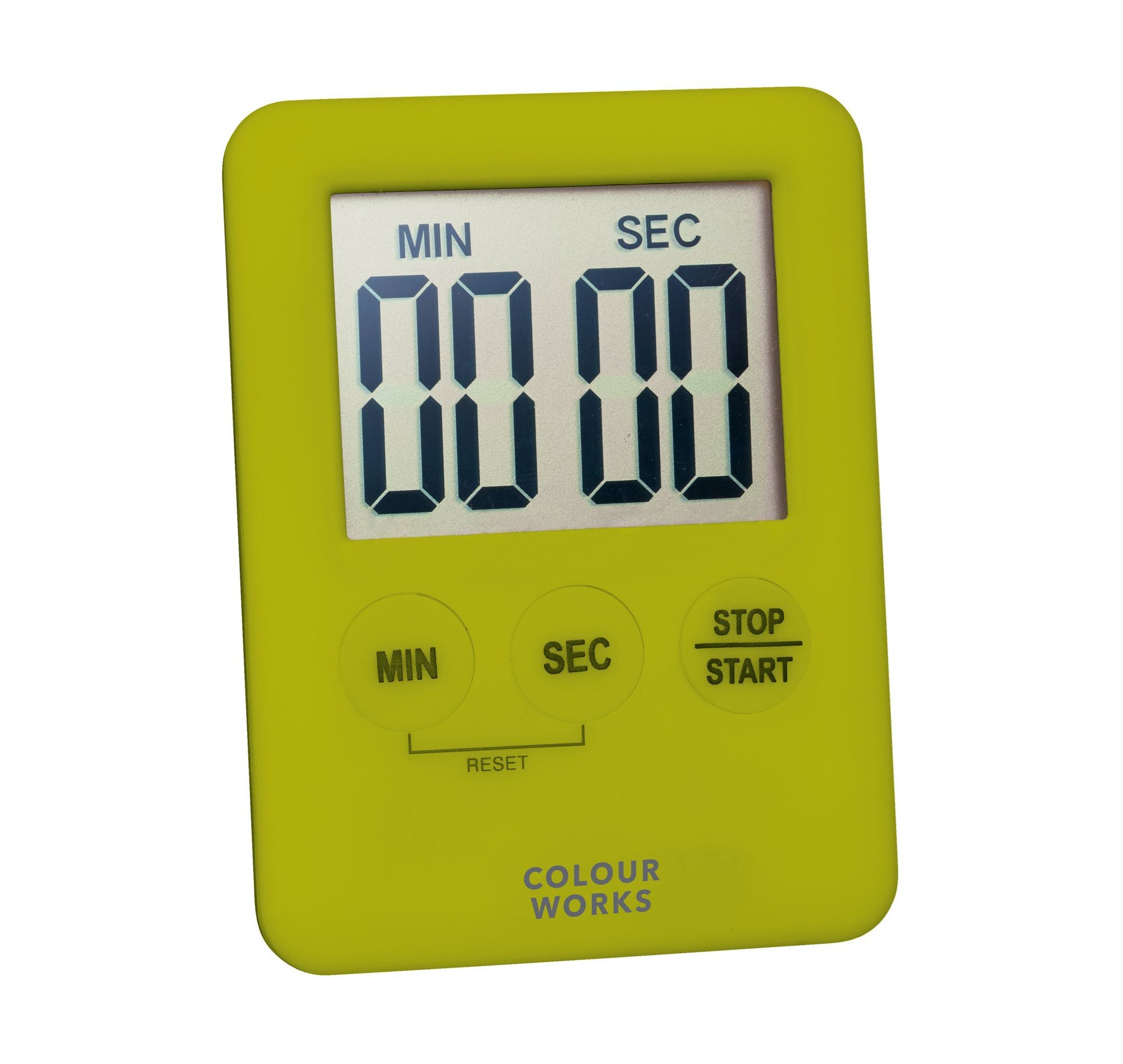 A Colourworks elektronikus időzítő akár 99 percre is programozható, ami könnyen leolvasható az LCD kijelzőn, és közben csinálhatsz valami mást is.