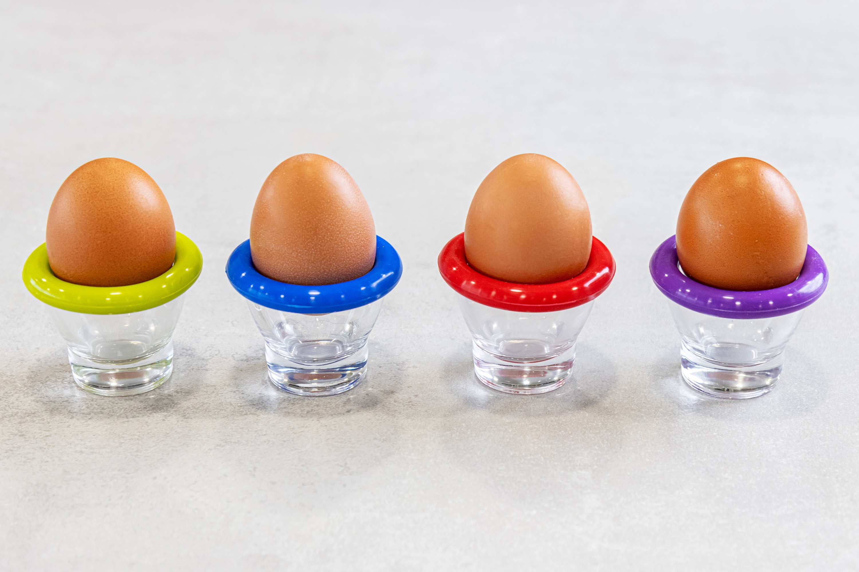 Colourworks márkájú tojáscsésze, anyaga üveg, szilikon védőgyűrűvel.