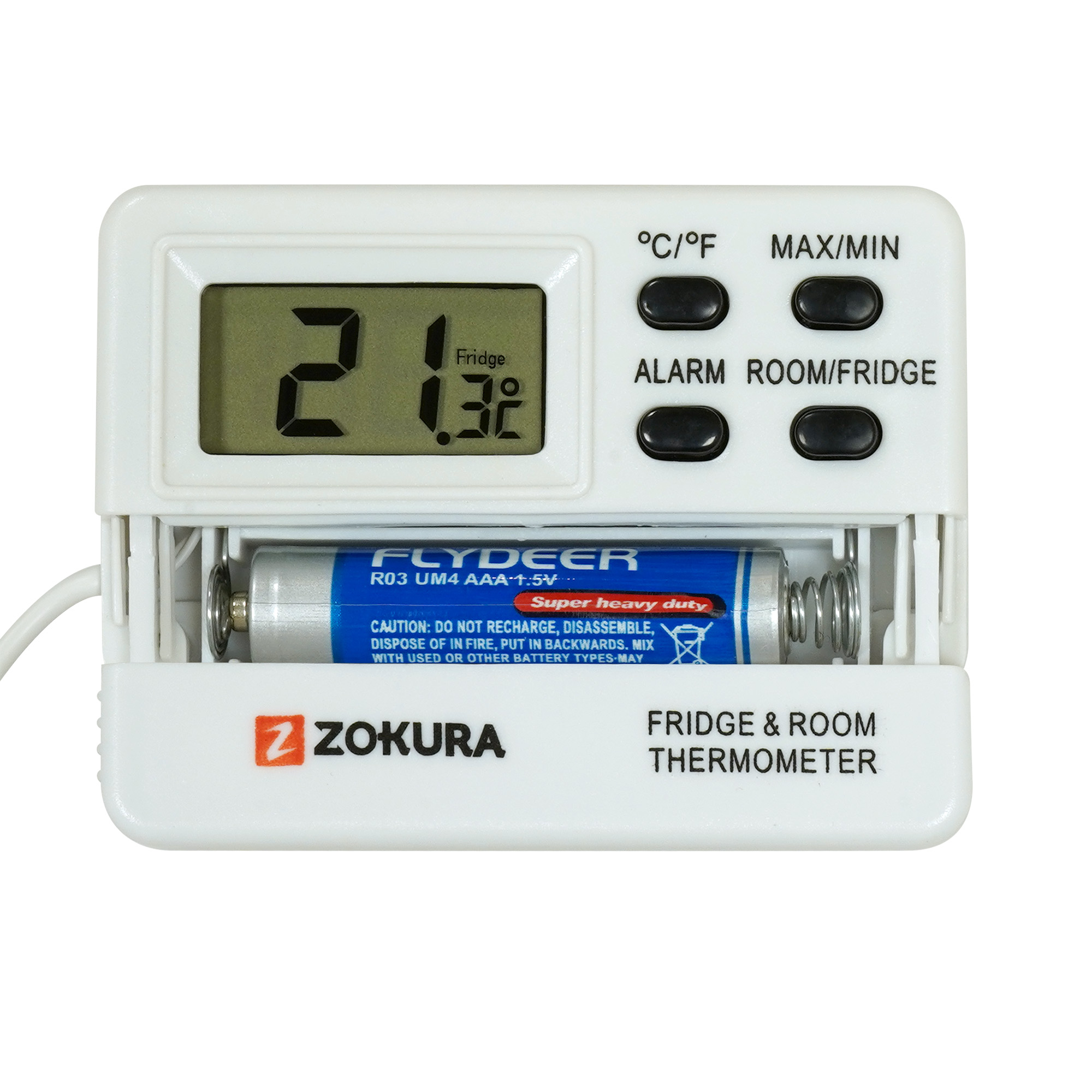 Digitális hőmérő hűtő/fagyasztó és szobahasználatra, a Zokura gyártotta.