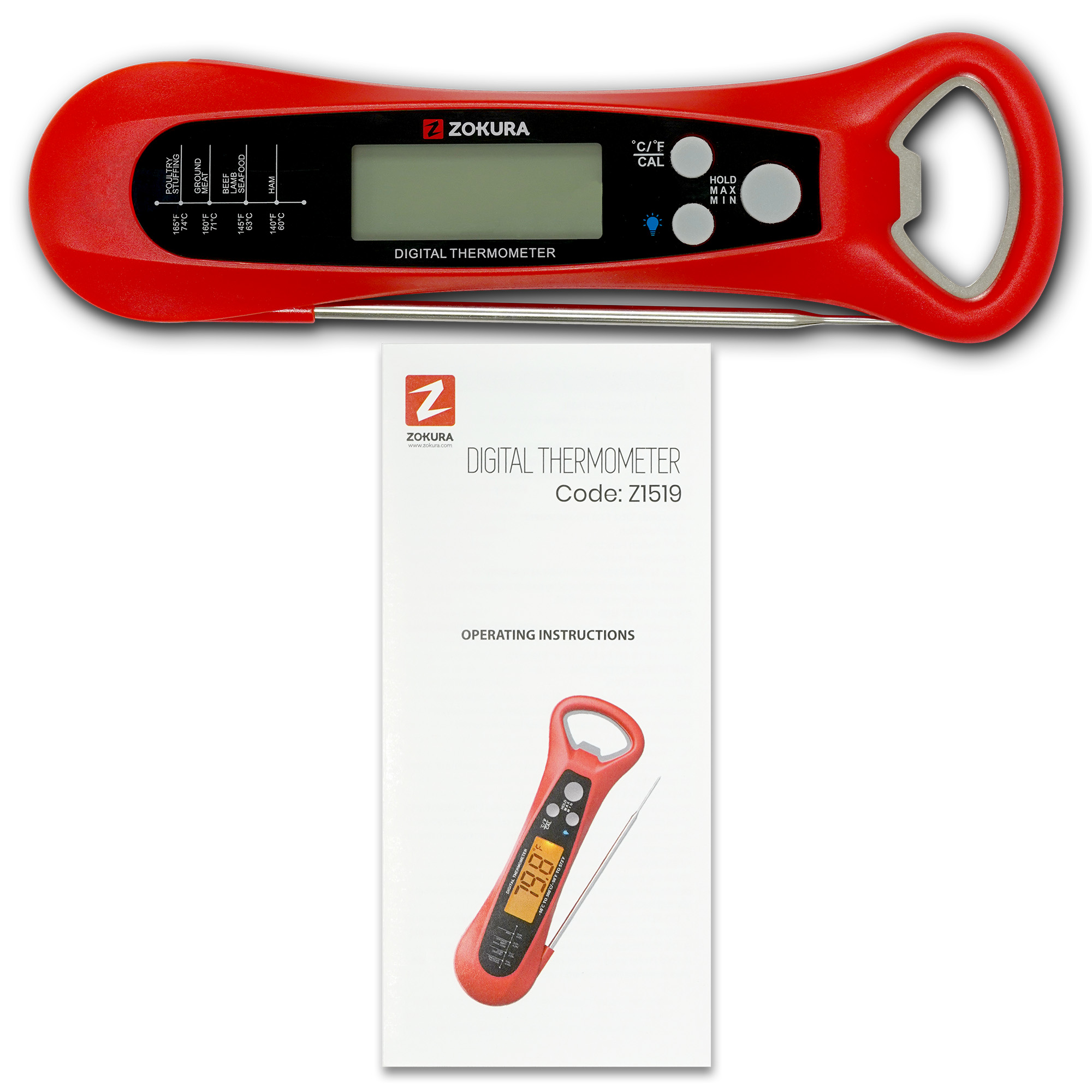 Digitális konyhai hőmérő beépített palacknyitóval, a Zokura gyártotta.