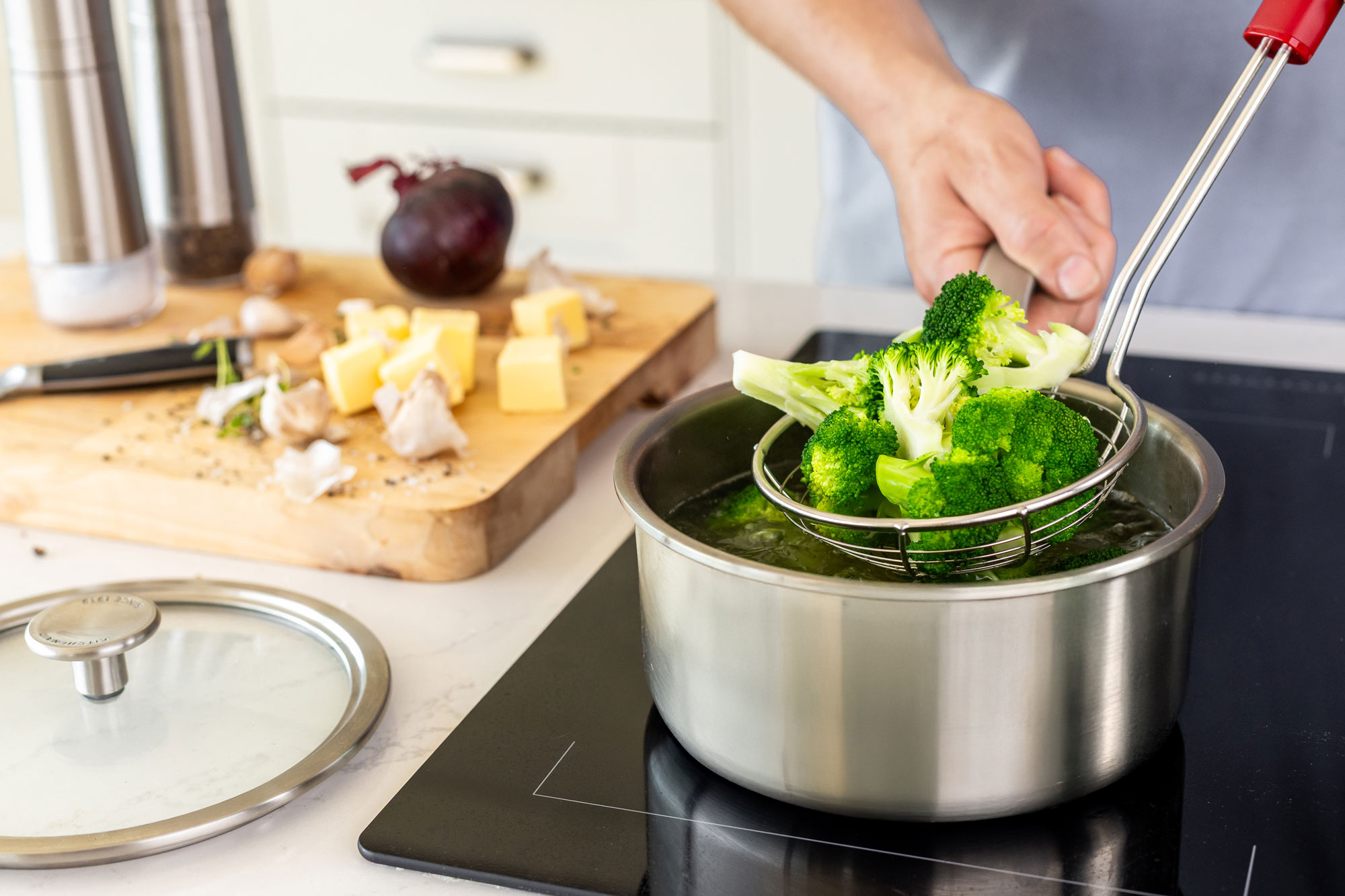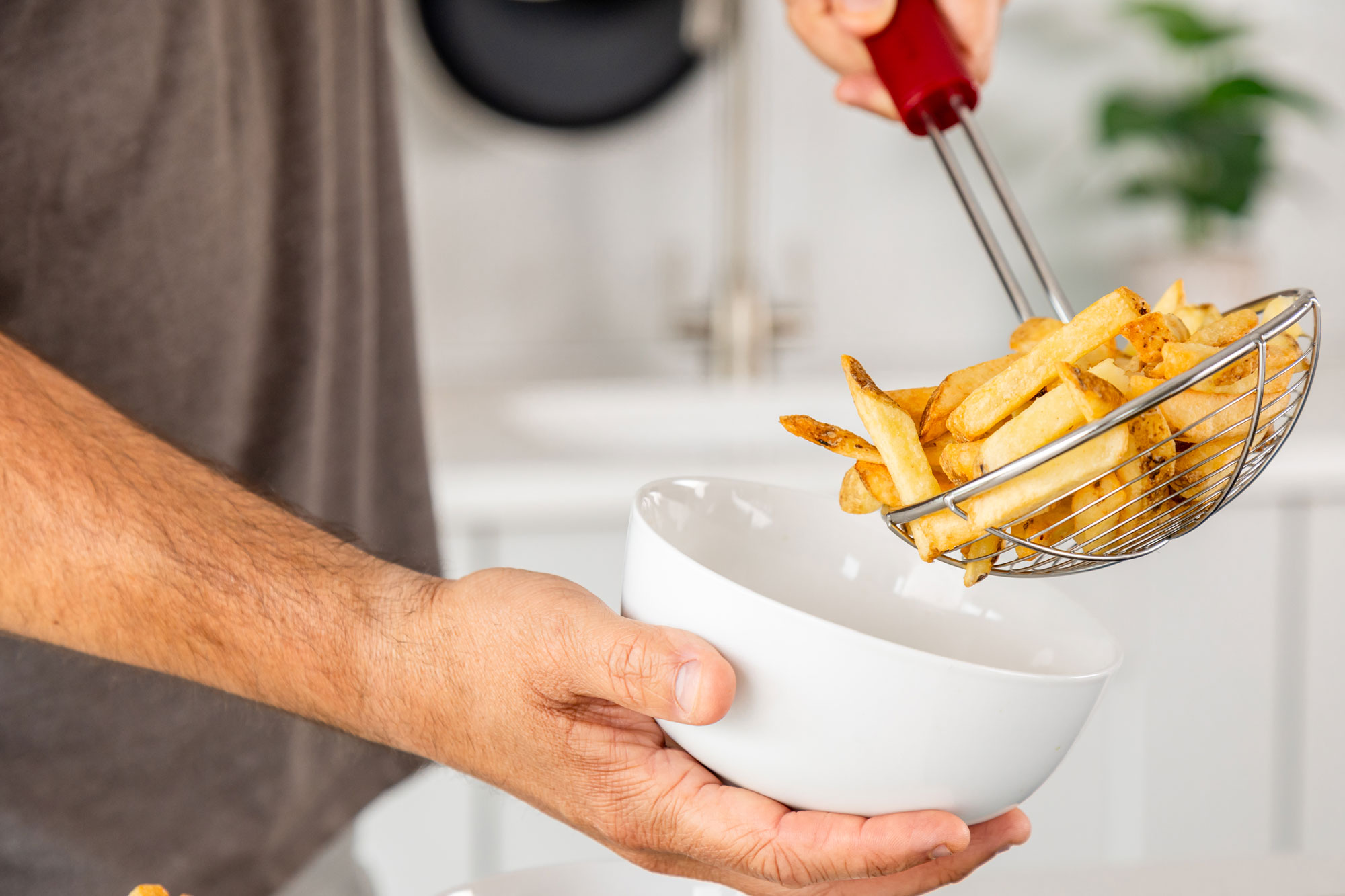 Ez KitchenAid drótszűrő nélkülözhetetlen eszköz minden konyhában, és segít könnyedén eltávolítani a daragombócokat, a tésztát, vagy a sült krumplit a forró olajból.