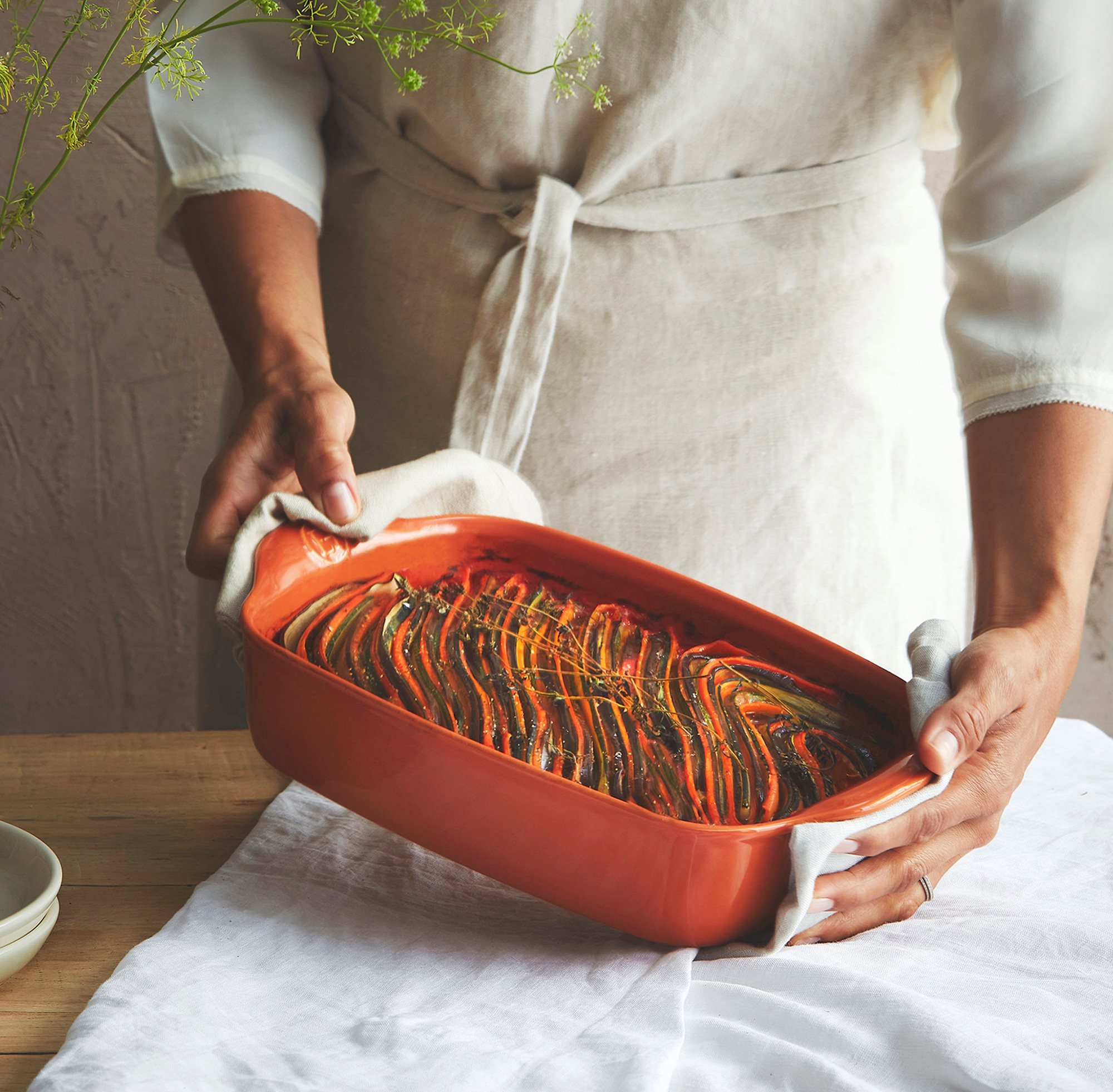 A kollekció téglalap alakú sütőtálcája ideális egy gyors étel elkészítéséhez. A magas hőmérséklettel syemben ellenálló anyagnak köszönhetően - amelyből készült - nevezetesen a kiváló minőségű kerámiák, a sütőtálca azonnal átmenetet tud képezni a -20 ° C-ról a +270 ° C feletti hőmérsékletre, mind a sütőben, mind a mikrohullámú sütőben. A szögletes alakú fogantyúi lehetővé teszik a könnyű kezelést, élénk színű kialakítása pedig több stílust hoz a konyhába!