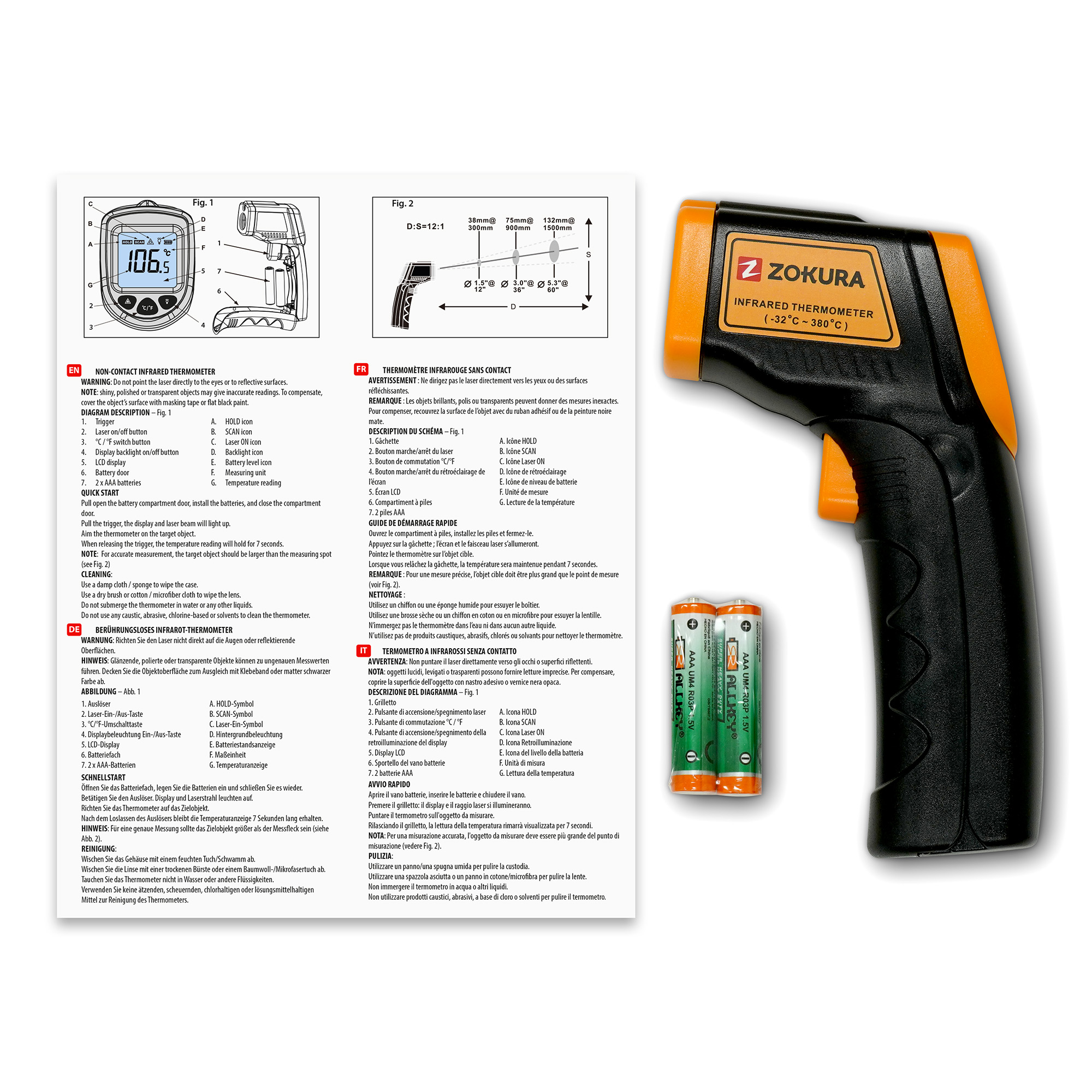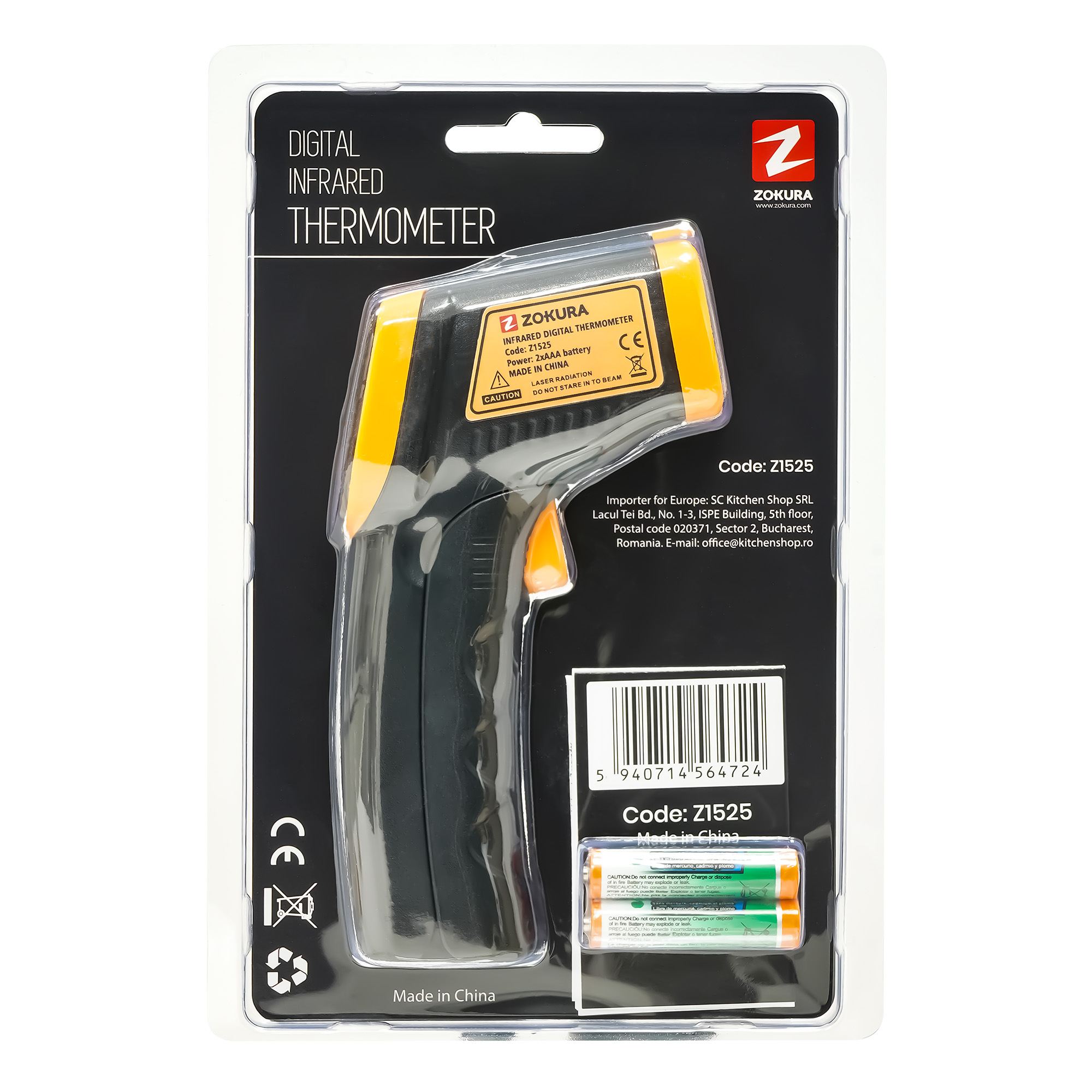 Érintkezés nélküli infravörös hőmérő, amelyet a Zokura gyártott.