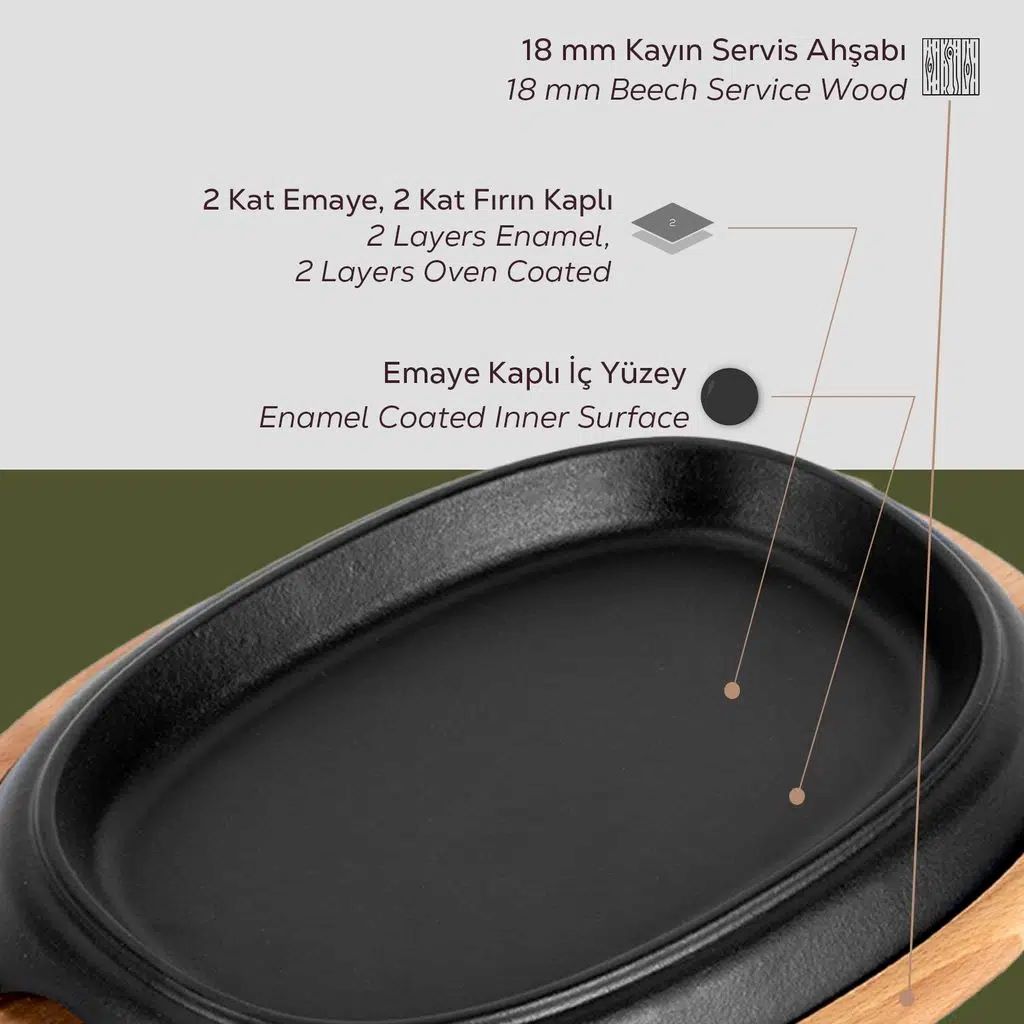 Fajita ovális főzőlap, 26 x 19 cm, fa tálalótállal - LAVA