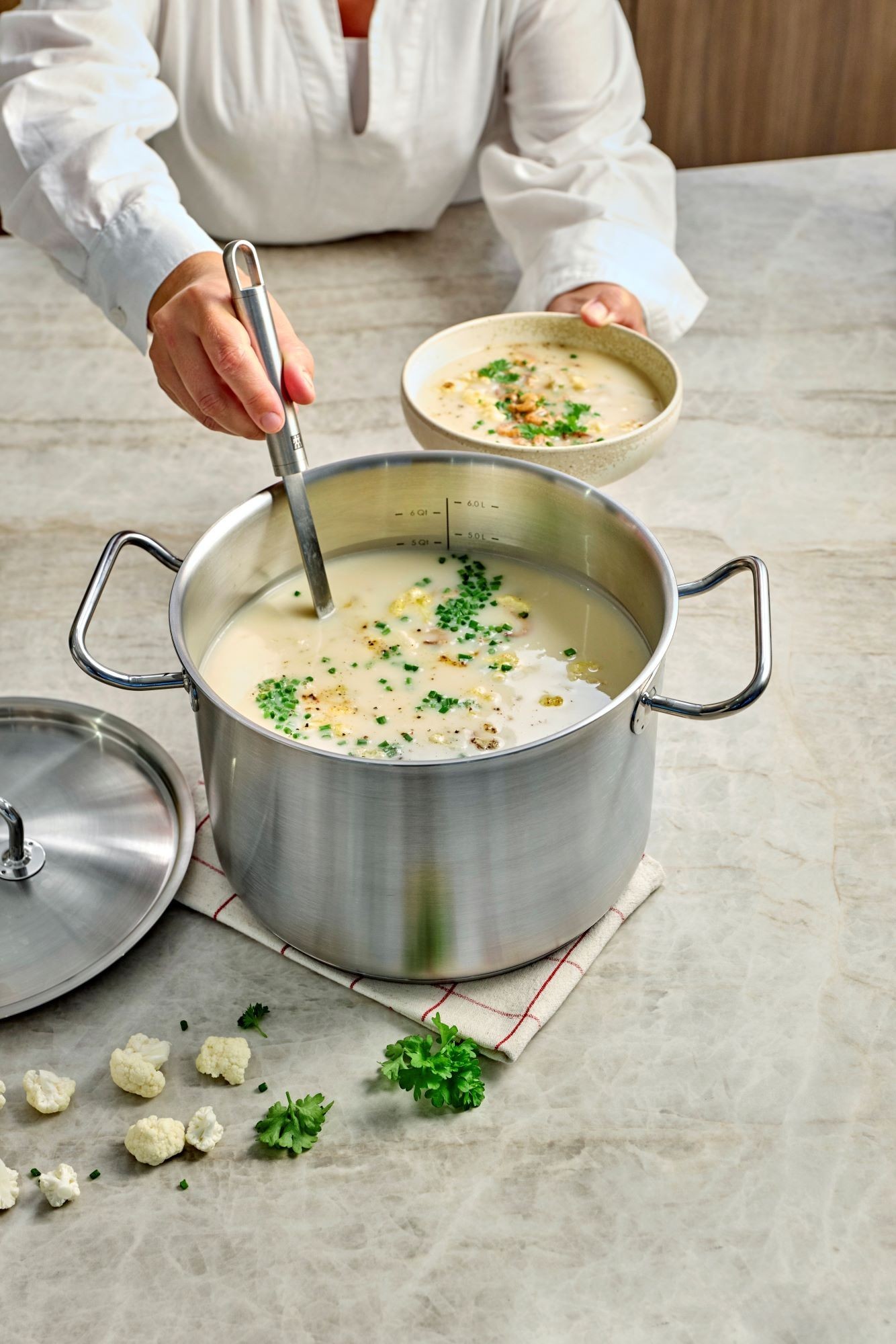 A speciális öntőperem lehetővé teszi az étel könnyű szállítását