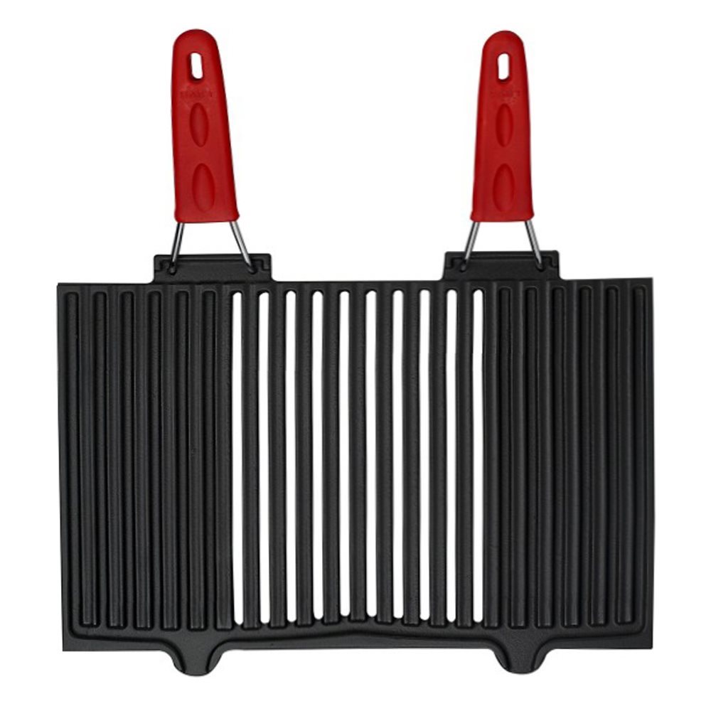 Öntöttvas grill 2 fogantyúval, rozsdamentes acélból készült szilikon bevonattal, 40 x 25 cm területtel, Láva márka.