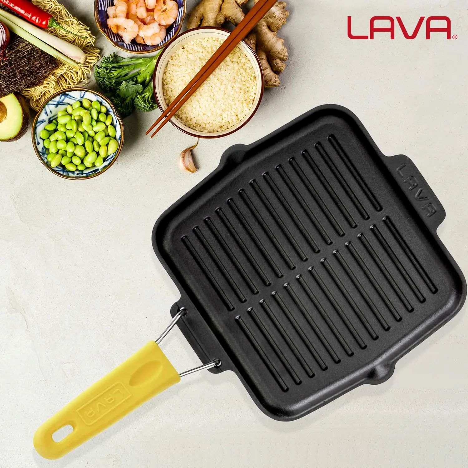 Szögletes grillserpenyő, Lava márkától, 21 × 21 cm méretű, öntöttvasból, űrtartalom 0,41 l.