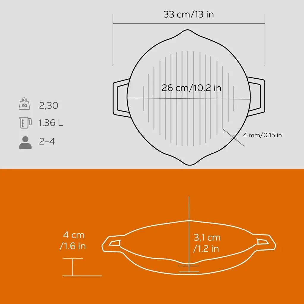 A grill serpenyő ideális 2 vagy 4 adaghoz.