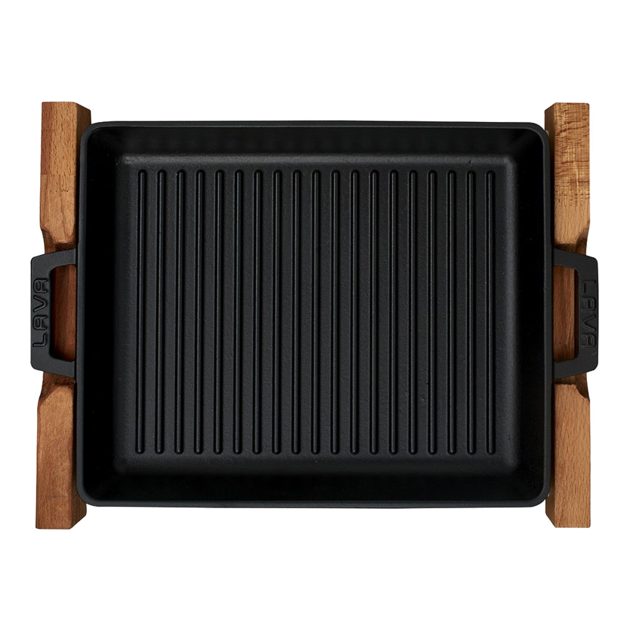 Grilltálca, öntöttvas, 26 x 32 cm, fából készült állványral - LAVA