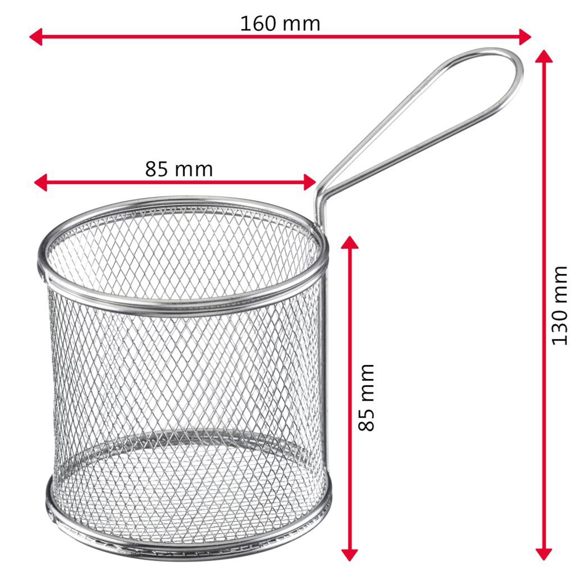 Ez a rozsdamentes acélból készült vonzó tálalókosár ideális otthoni és professzionális konyhákba. A kosárral egyedi köretek, előételek és harapnivalók tetszetős bemutatására használható, designjával kiemelkedik bármely étteremben, bárban vagy partikon.