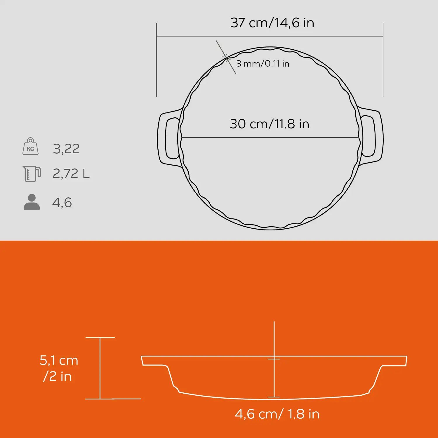 Az alapvastagság 5 mm, így a Lava edények minden típusú főzőlapon használhatók, beleértve az indukciós főzőlapot is. Ne használja mikrohullámú sütőben.