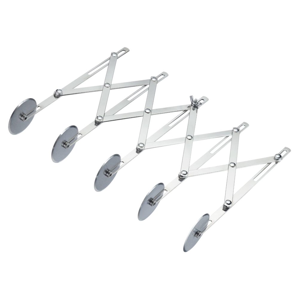 A rozsdamentes acélból készült, 5 kerekű, kihúzható tésztavágó tökéletes eszköz otthoni vagy professzionális konyhákba. Lehetővé teszi a tészta, fondant és egyéb tésztafajták precíz és gyors elkészítését és adagolását. A tészta szélessége 1,2 és 12,2 cm között állítható.