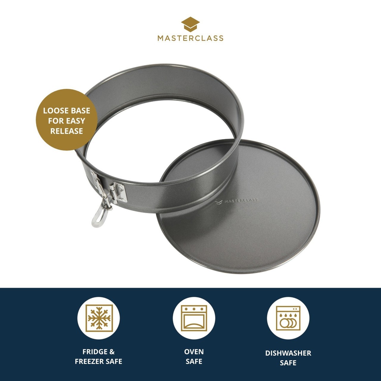 Kitchen Craft sütőforma, átmérője 23 cm, anyaga 1 mm-es acél, dupla tapadásmentes réteggel. A forma alja lekapcsolható.