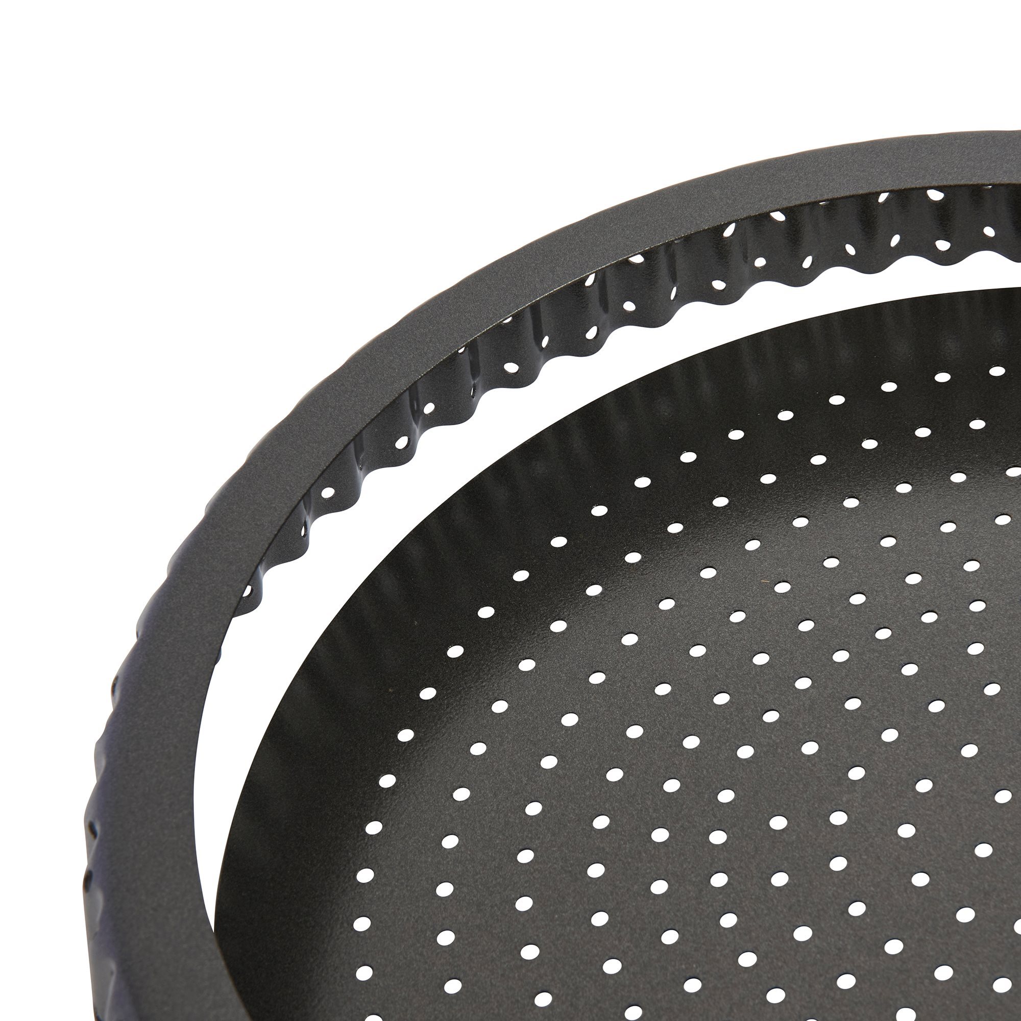 Kitchen Craft tepsi, átmérője 25 cm, magassága 3 cm, piték és lepények sütéséhez ideális, a sütőn található kis lyukaknak köszönhetően a készítmény "lélegezni" tud. PFOA, PTFE és BPA mentes dupla tapadásmentes bevonattal rendelkezik.