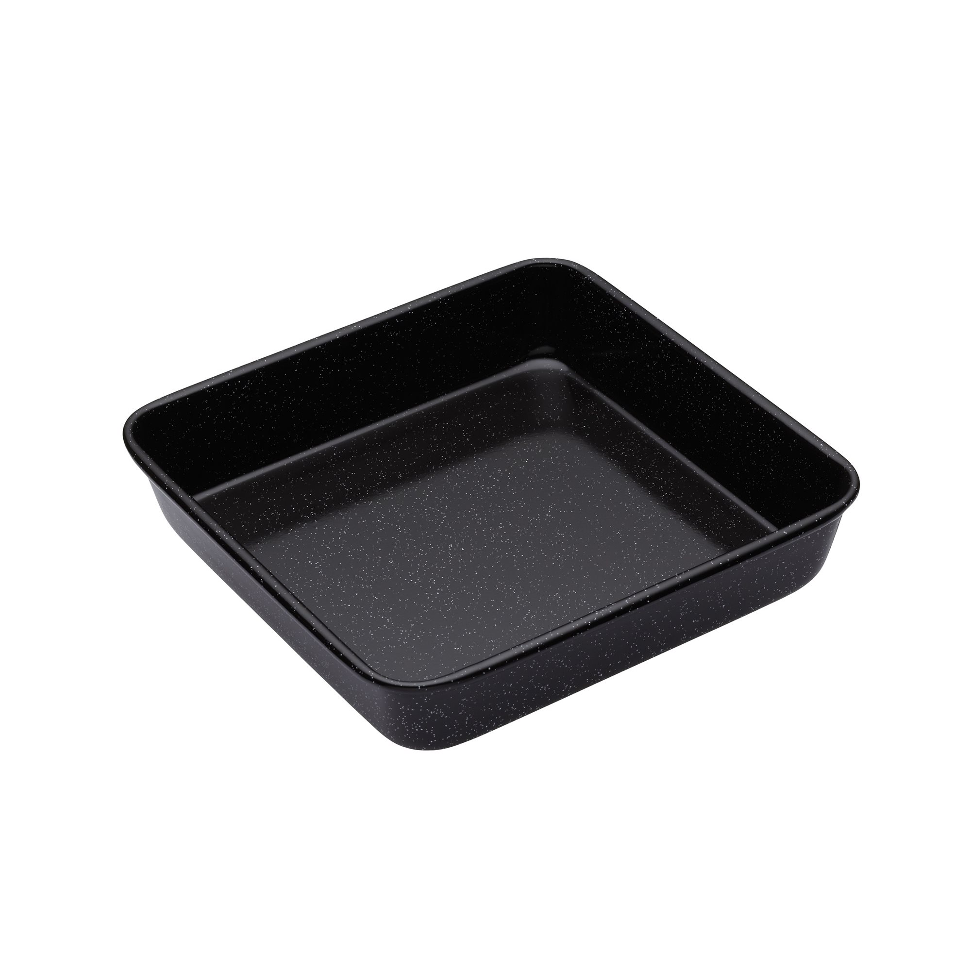 Egy négyzet tepsi, amelyet sütemények, lasagna és sültek készítésére használhat. Anyaga 1mm vastag acél, egy zománcréteggel, átlója 23 cm.
