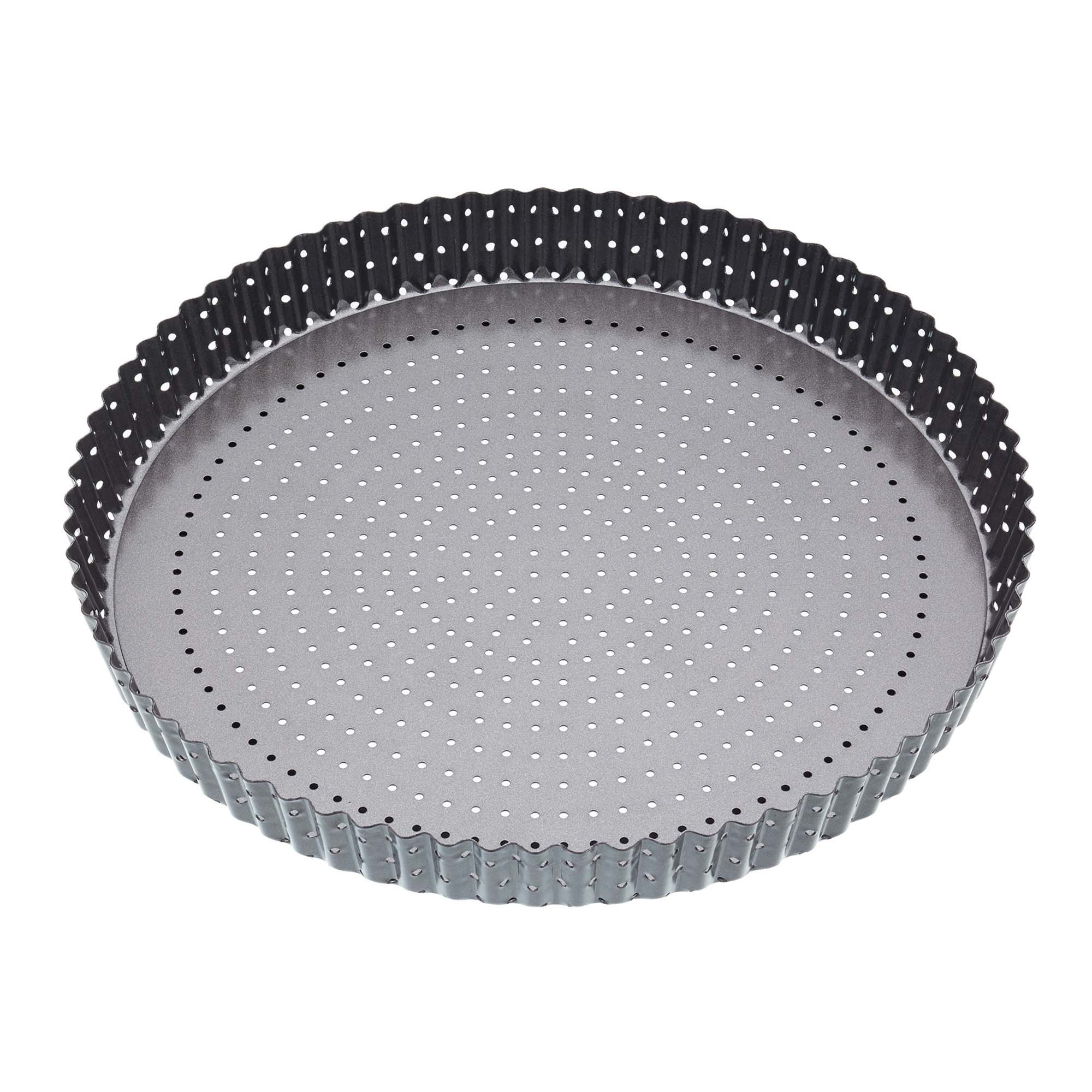 Tálca, a Kitchen Craft márkától, 30 cm átmérőjű, ideális torták és finom quiche készítéséhez. A tálca teljes felületén lévő nyílások lehetővé teszik a levegő keringését, így tökéletes kéreget kapnak a főzési folyamat során. A tálca dupla tapadásmentes réteggel rendelkezik, amely nem tartalmaz PFOA-t, PTFE -t és BPA-t.