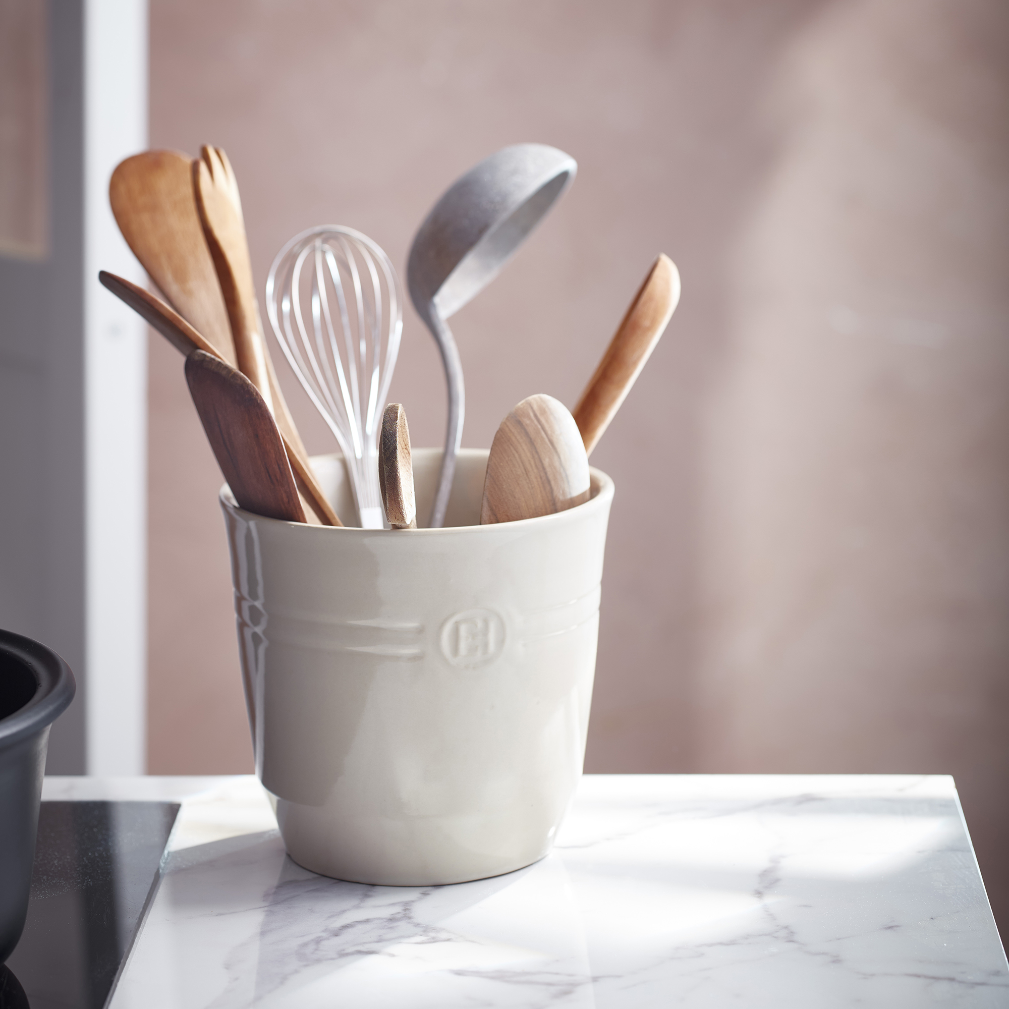 Vigyen egy csipetnyi eleganciát konyhájába, miközben rendszerezi konyhai eszközeit az Emile Henry új konyhai eszköztartójával. A tartósságot és az esztétikát ötvöző elem egyszerre konyhai alapvető kellék és dekoratív konyhapult-kiegészítő, így praktikus és vonzó, még egy hagyományosan berendezett konyhában is.
