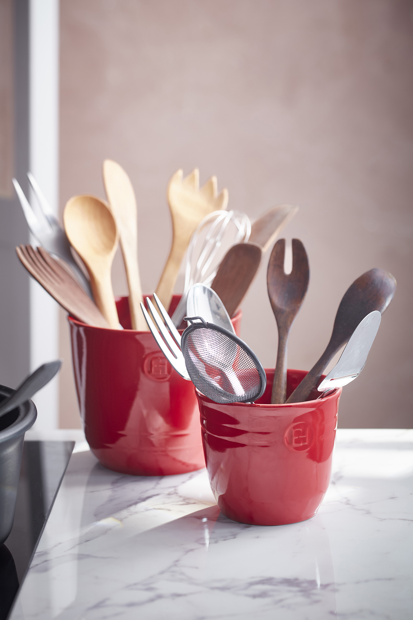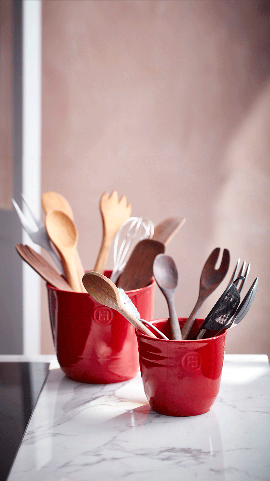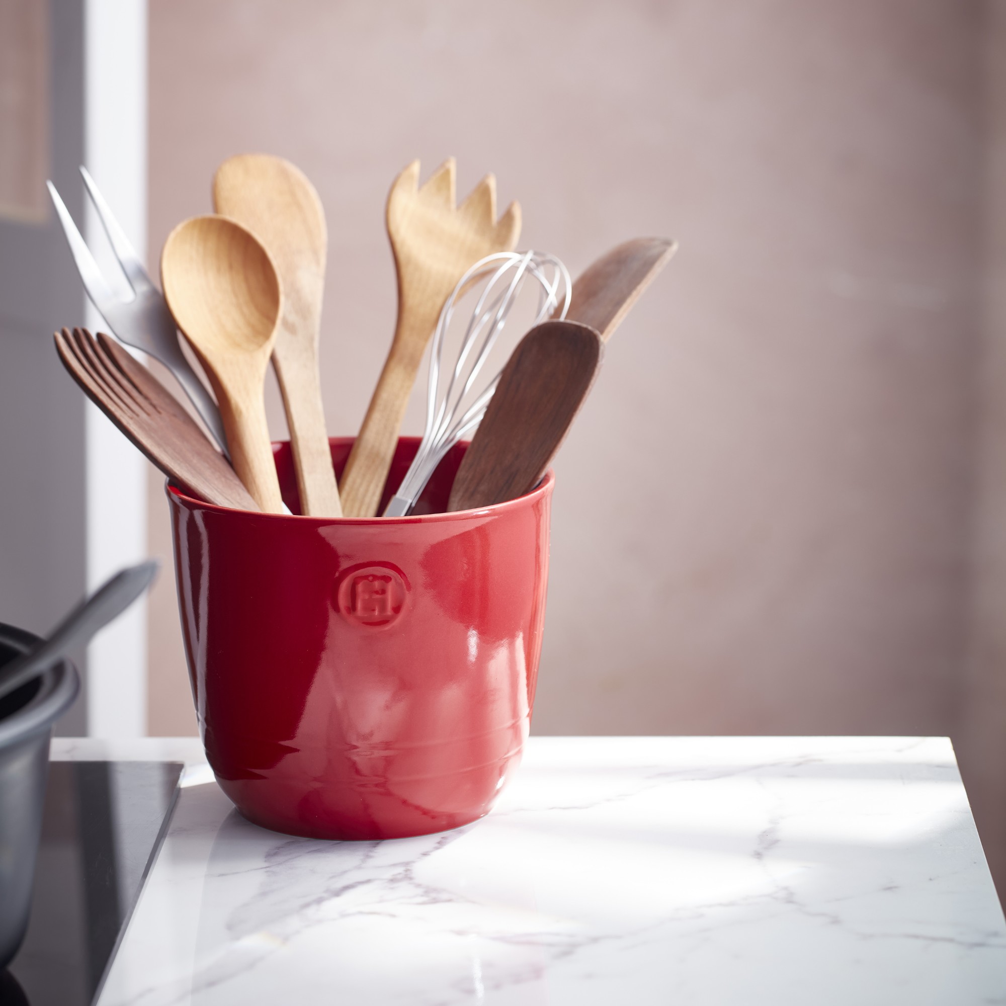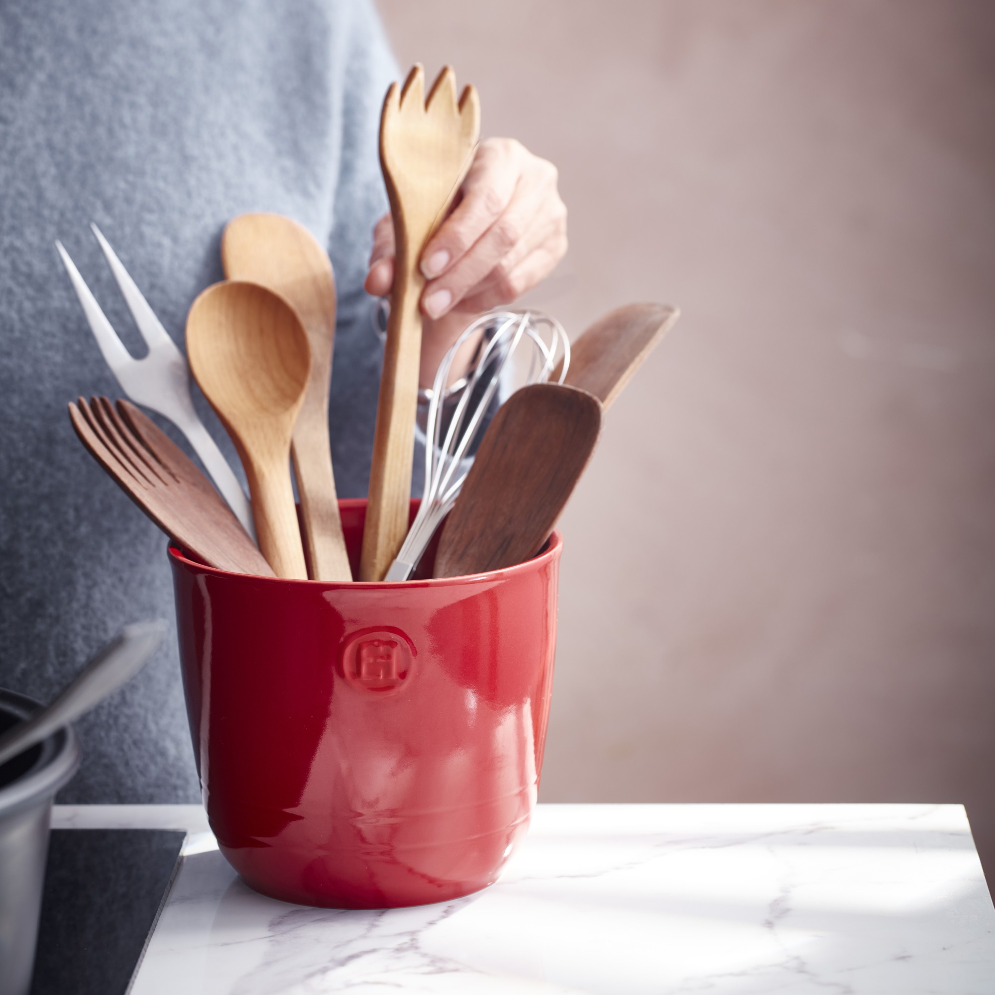Vigyen egy csipetnyi eleganciát konyhájába, miközben rendszerezi konyhai eszközeit az Emile Henry új konyhai eszköztartójával. A tartósságot és az esztétikát ötvöző elem egyszerre konyhai alapvető kellék és dekoratív konyhapult-kiegészítő, így praktikus és vonzó, még egy hagyományosan berendezett konyhában is.
