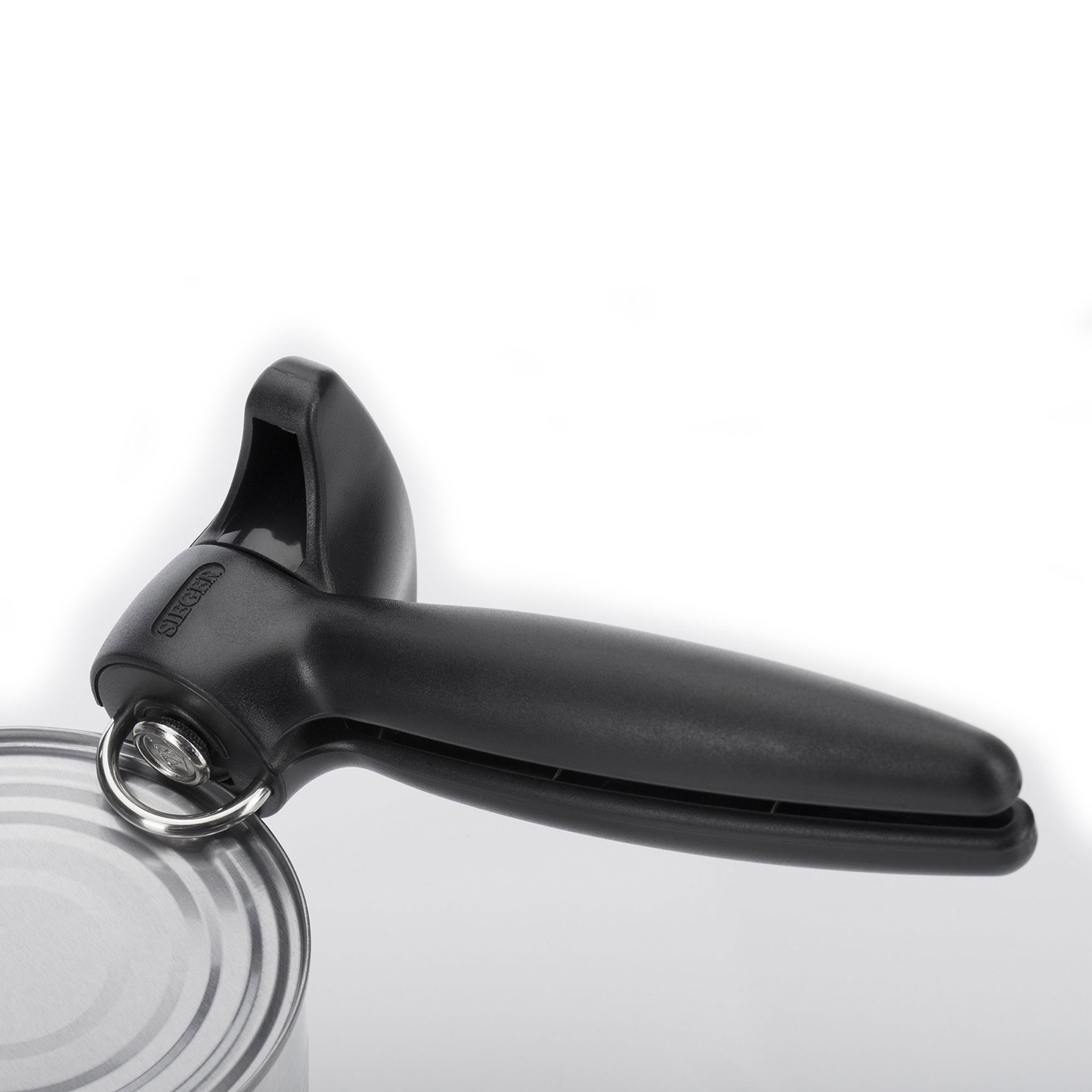 A "Sieger-Bravo" konzervnyitóval könnyedén és sérülésveszély nélkül nyithatja ki a konzerveket! Egyszerűen helyezze a nyitót vízszintesen a konzerv szélére, nyomja össze a fogantyúkat, és fordítsa el a gombot úgy, hogy a vágókerék végighaladjon a konzerven, éles szélek nélkül kinyitva a fedelet. A fedél egyszerűen visszahelyezhető a konzervre.