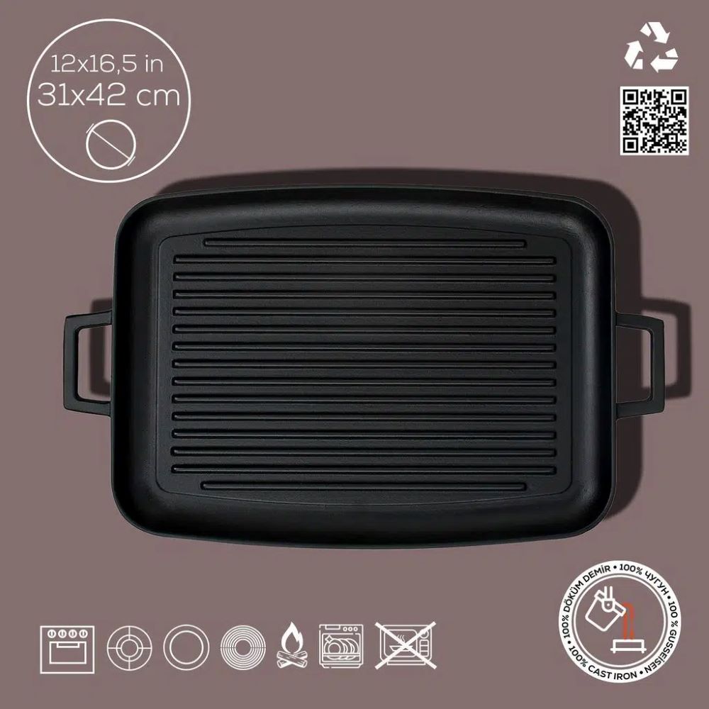 Grillsütő tálca, belső méretek 41,5 x 30 cm, űrtartalom 2,4 l, öntöttvasból, Lava márkájú.