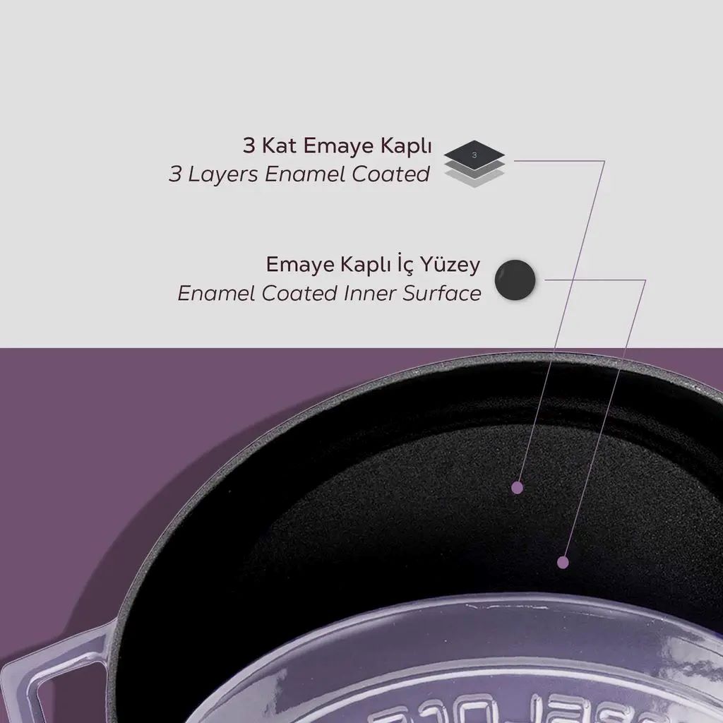 A Lava edények külső rétege üvegzománc, amely az üvegpor 750 - 850°C-on az edényre történő szórását jelenti. Ez az üvegpor az edény oldalára tapad és egy védőréteget képez, ugyanakkor hozzájárul a hő optimális eloszlásához.