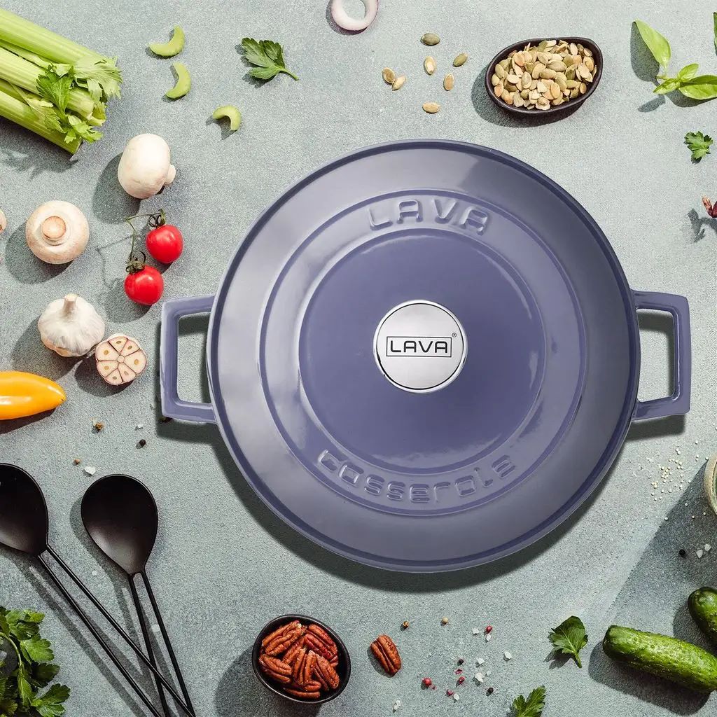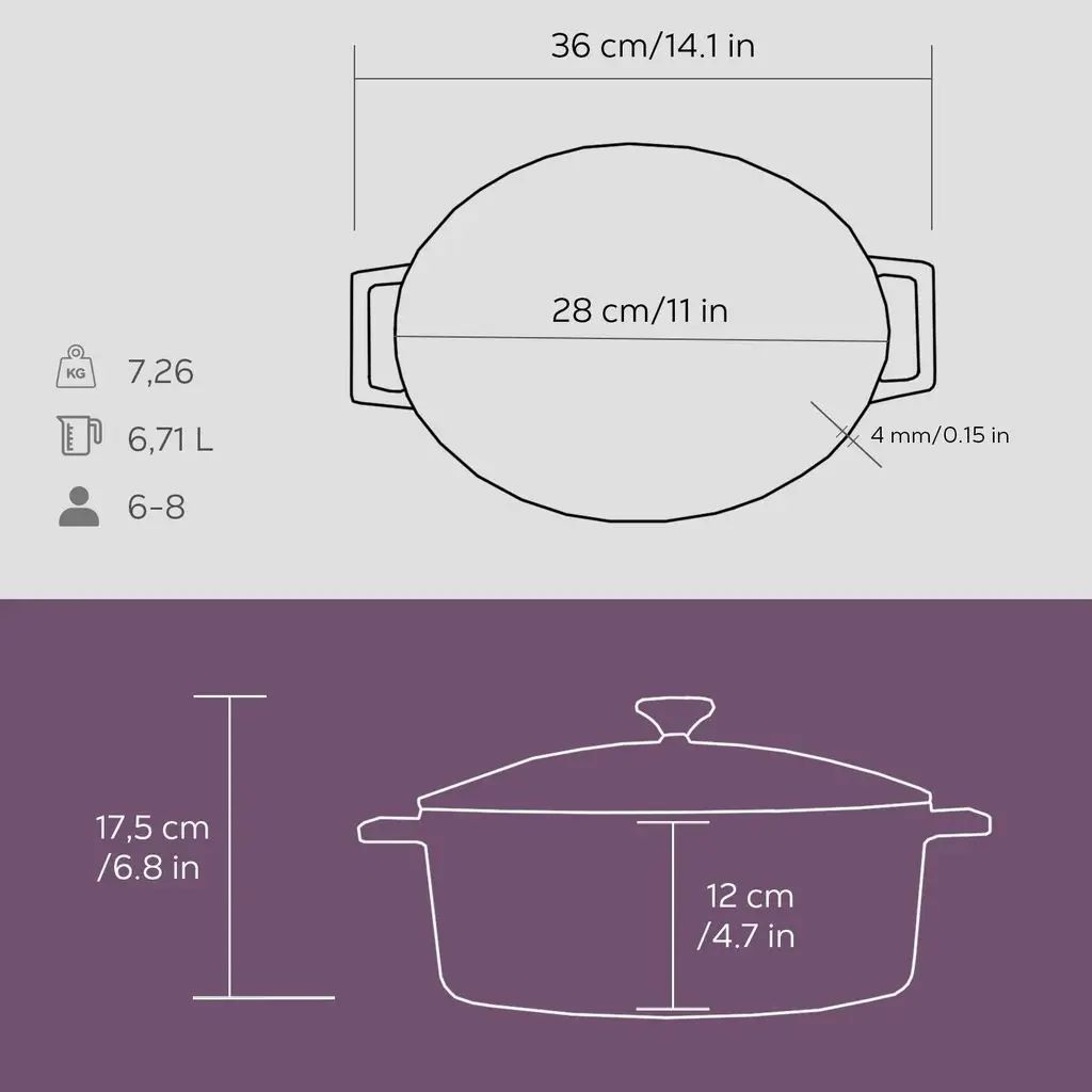Lava lábas, átmérője 28 cm, űrtartalma 6,7 l, anyaga öntvény.