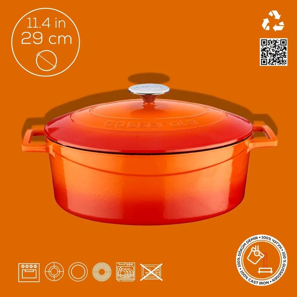 LAVA ovális öntvény lábas, 29cm/4,67L "Folk", narancs