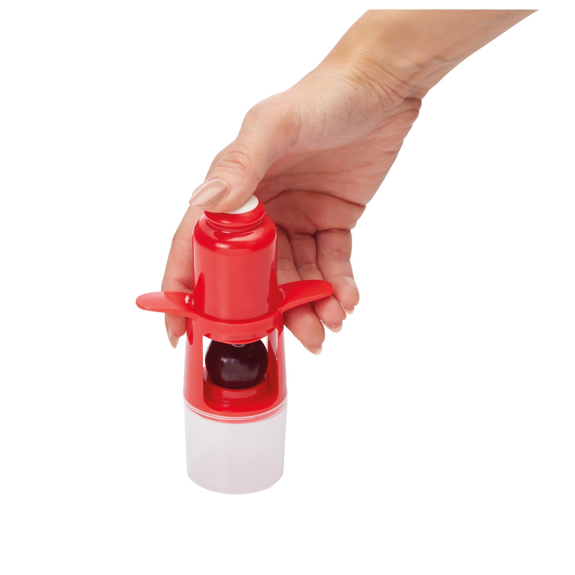 A kereszt alakú penge segítségével eltávolítható a cseresznye magja, anélkül, hogy a cseresznye húsa sérülne, a mag az eszköz alsó rekeszébe gyűl. Olajbogyó kimagozásához is ideális.