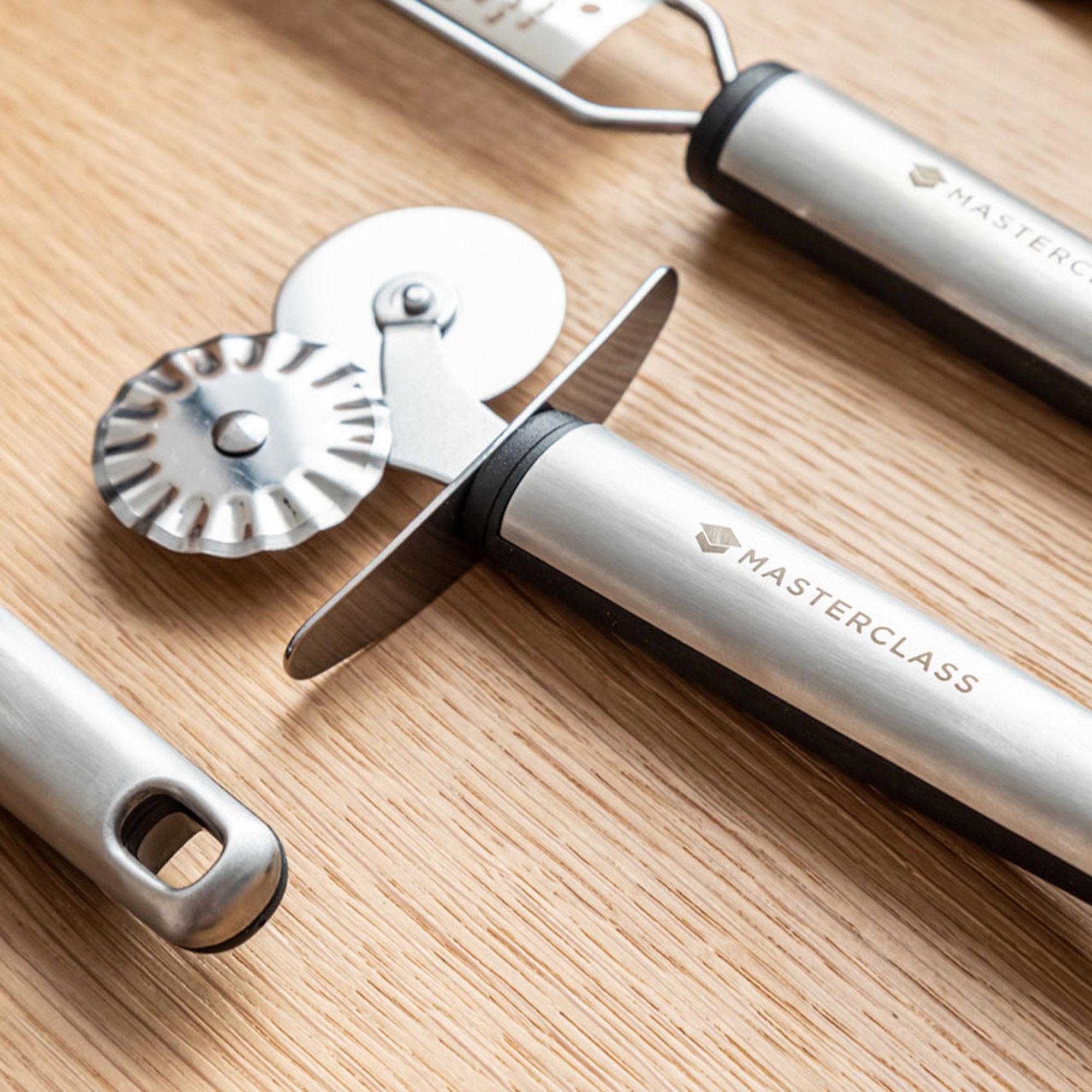 Kétkerekű pogácsaszaggató, rozsdamentes acélból, MasterClass márka.