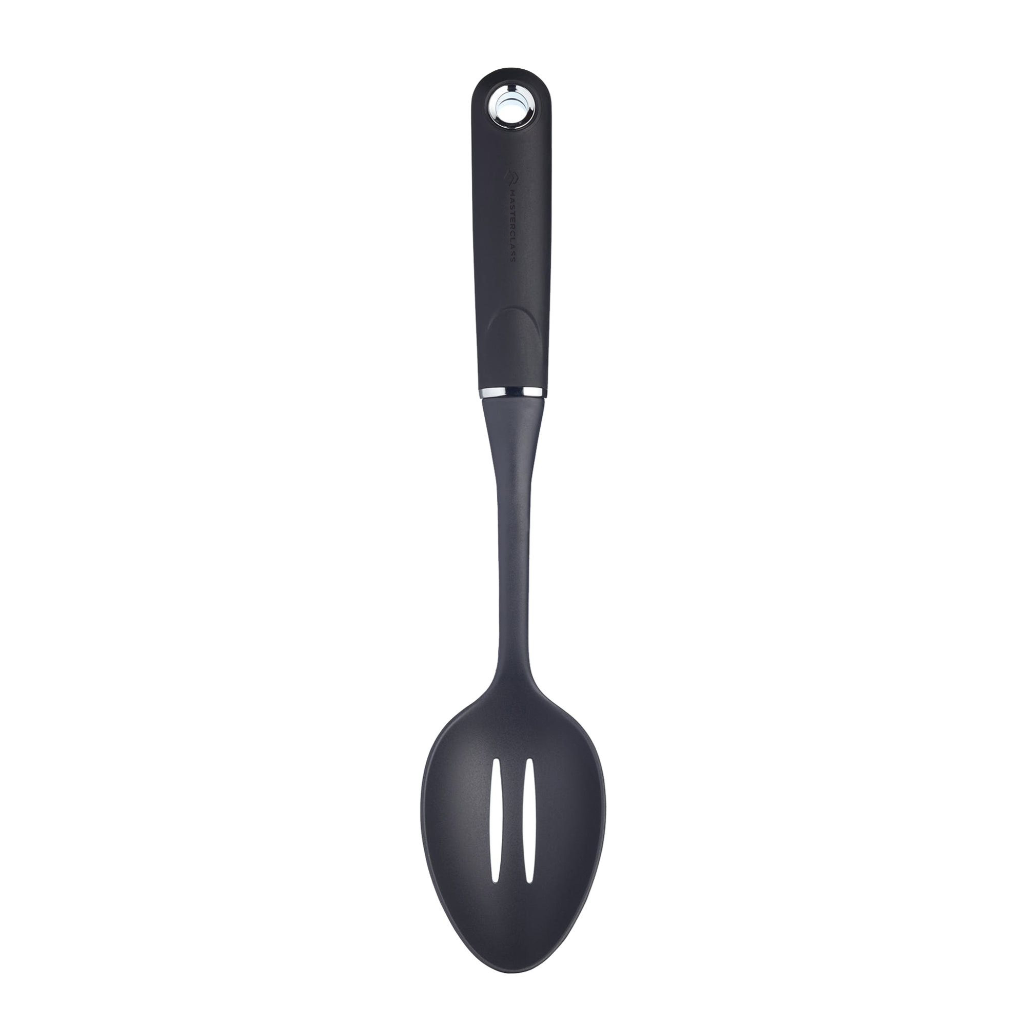 A hasított kanál egy hurokkal rendelkezik a konyhai edénytartón való tároláshoz, és prémium króm díszítéssel rendelkezik.