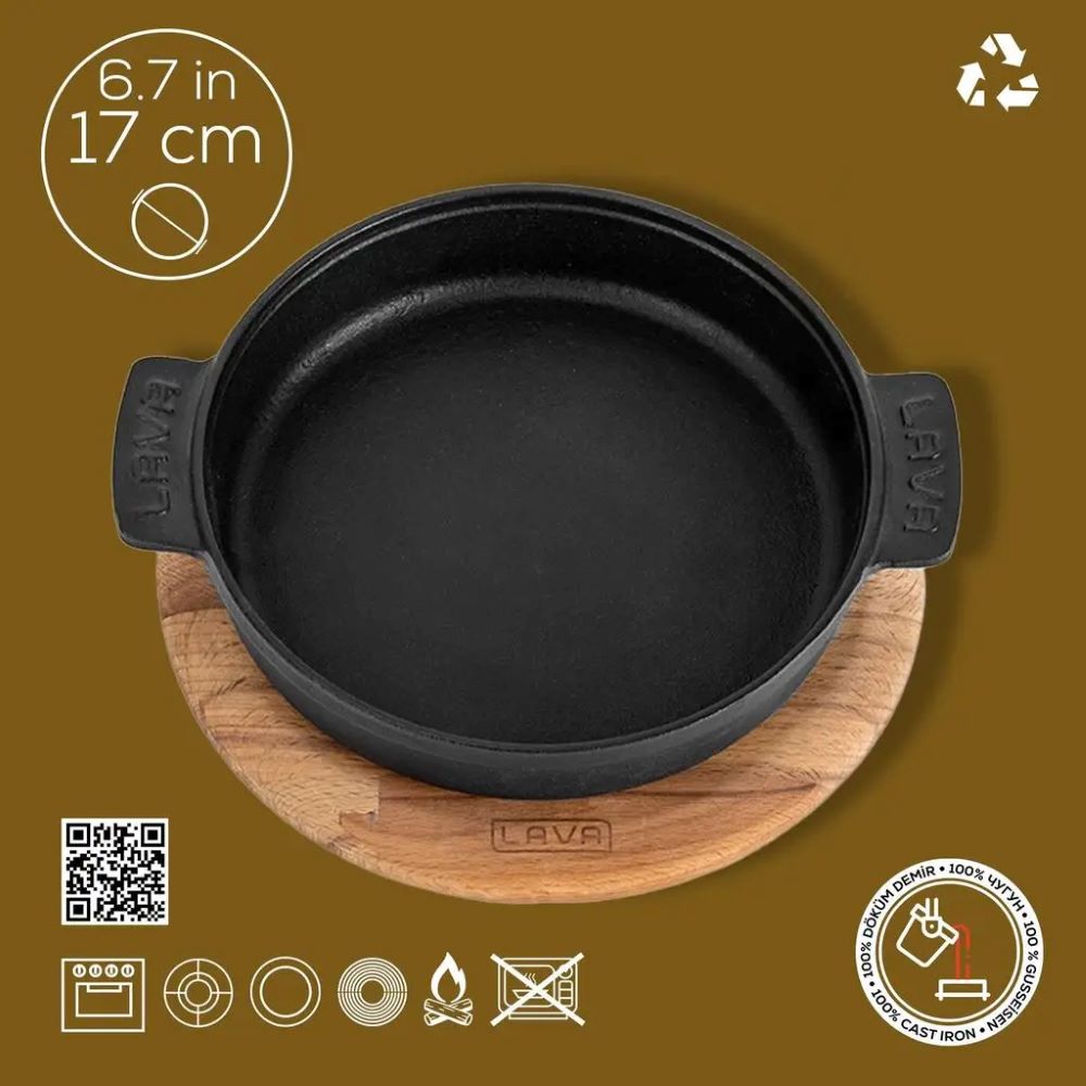 Kerek mini-serpenyő, Láva márka, átmérője 17 cm,kapacitása 0,5 l, öntöttvasból készült.