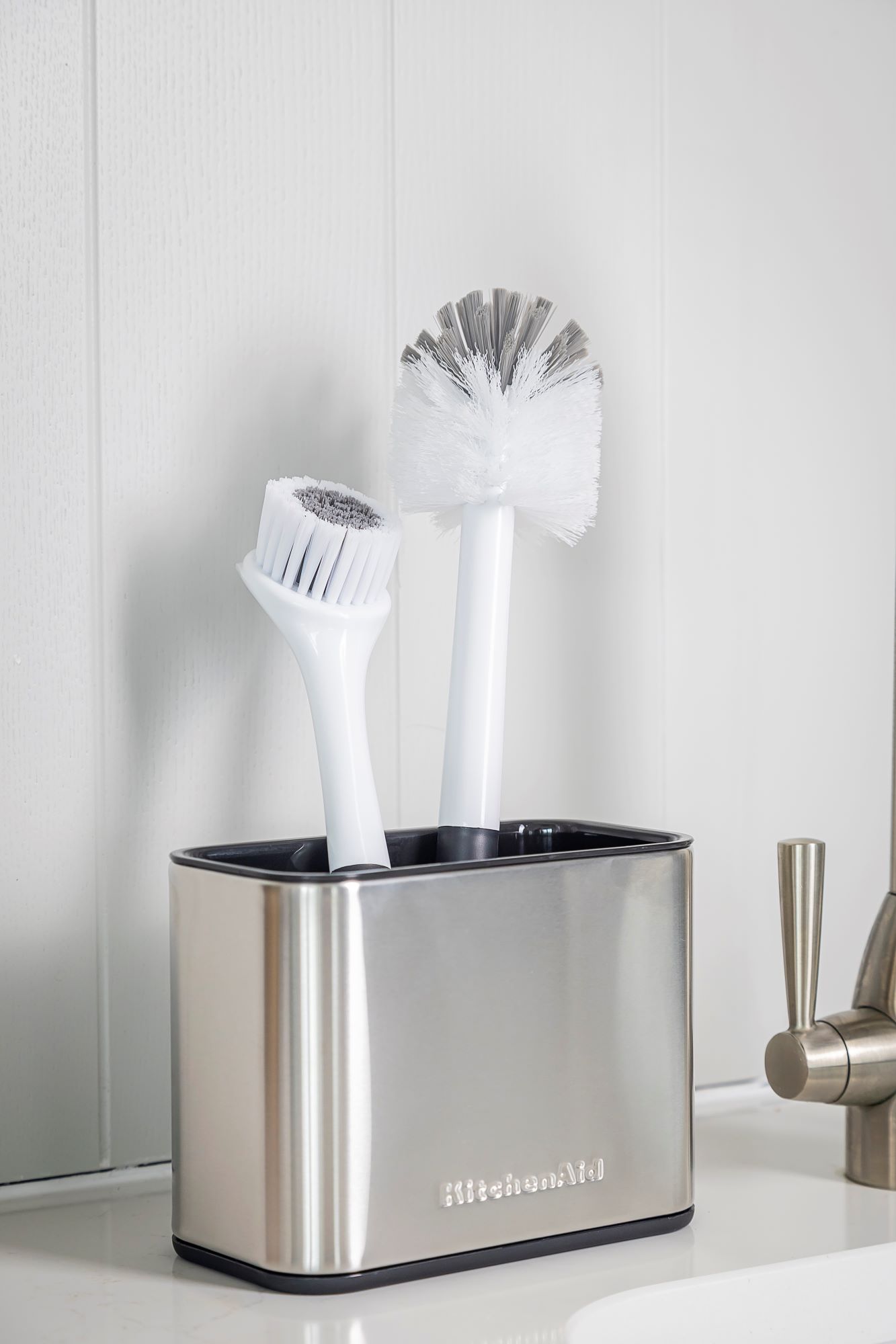 Tartsa keféit és mosogató tartozékait tökéletesen rendszerezetten a KitchenAid rozsdamentes acél mosogatótartó állvánnyal.