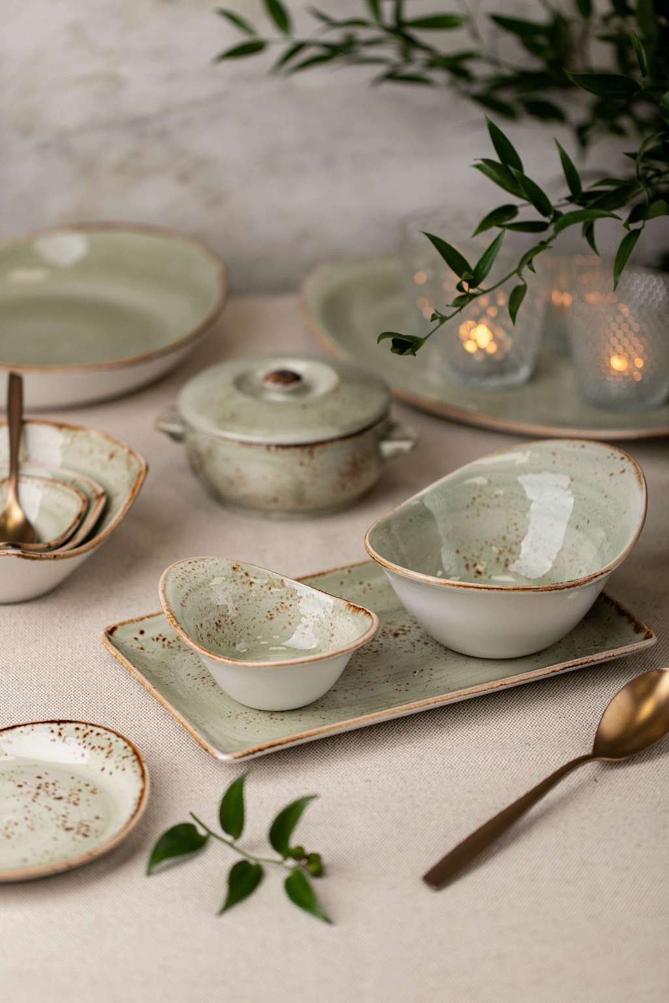 Téglalap alakú tál "Craft Green", mérete 27 × 16,75 cm, Steelite márka, vitrifikált kerámiából.