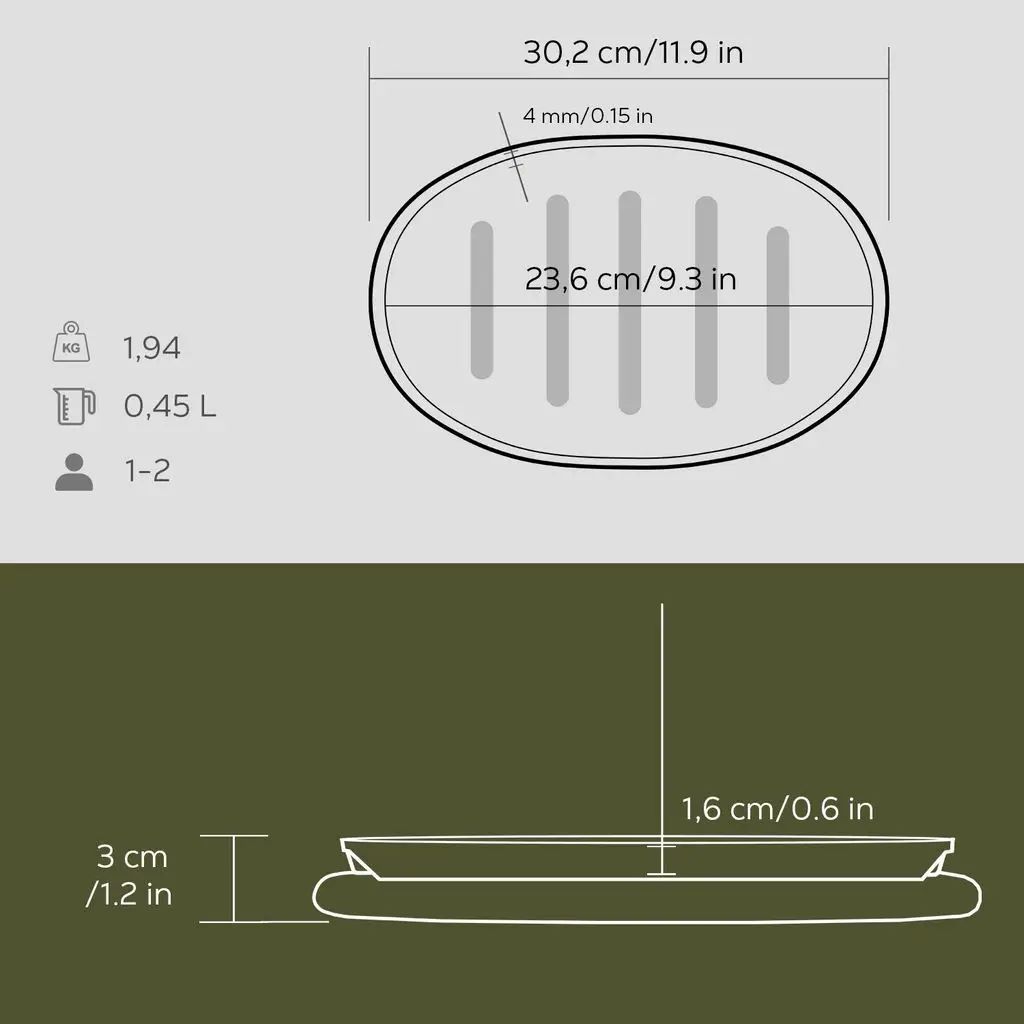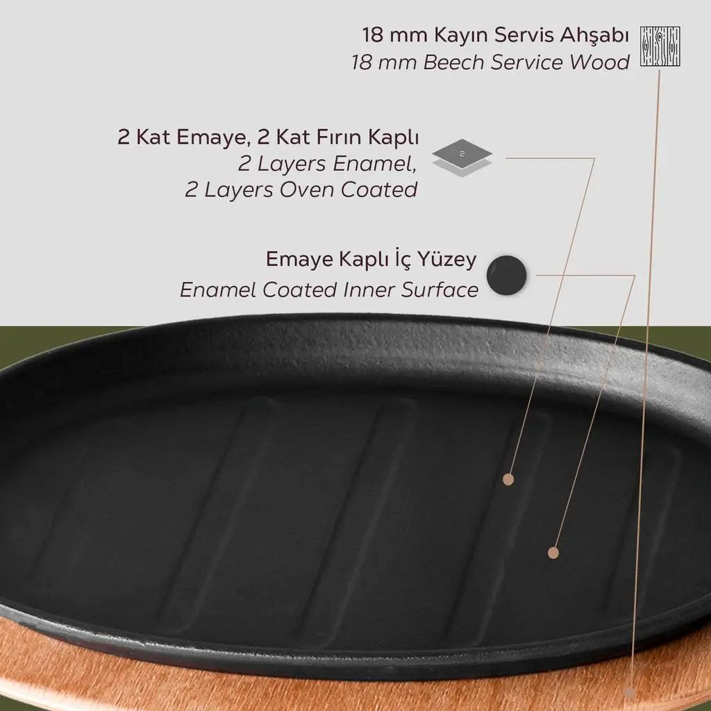 A serpenyő falának vastagsága 4 mm. A belső felületet egy réteg fekete zománc borítja, amely zsíros főzés során tapadásmentes tulajdonságokat biztosít.