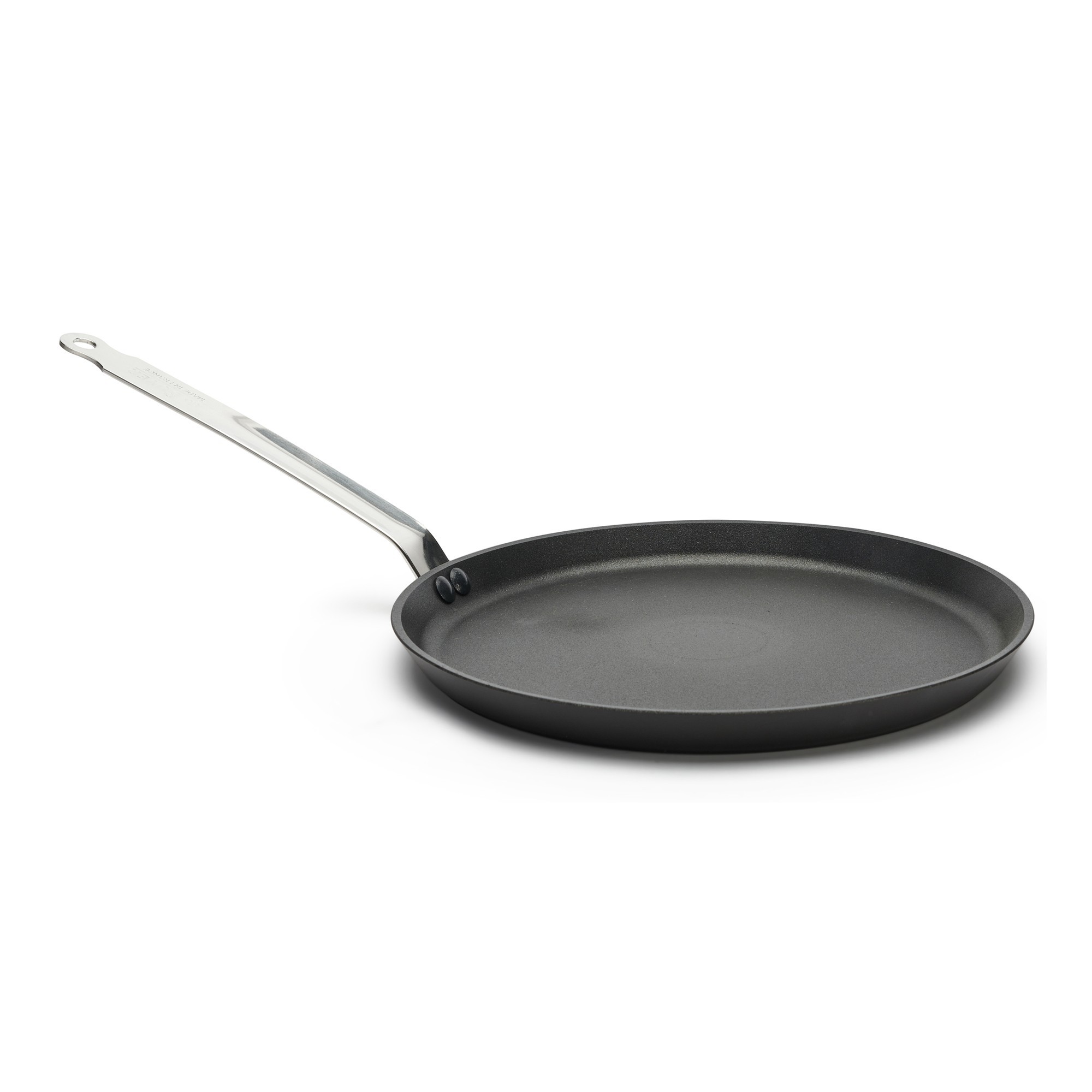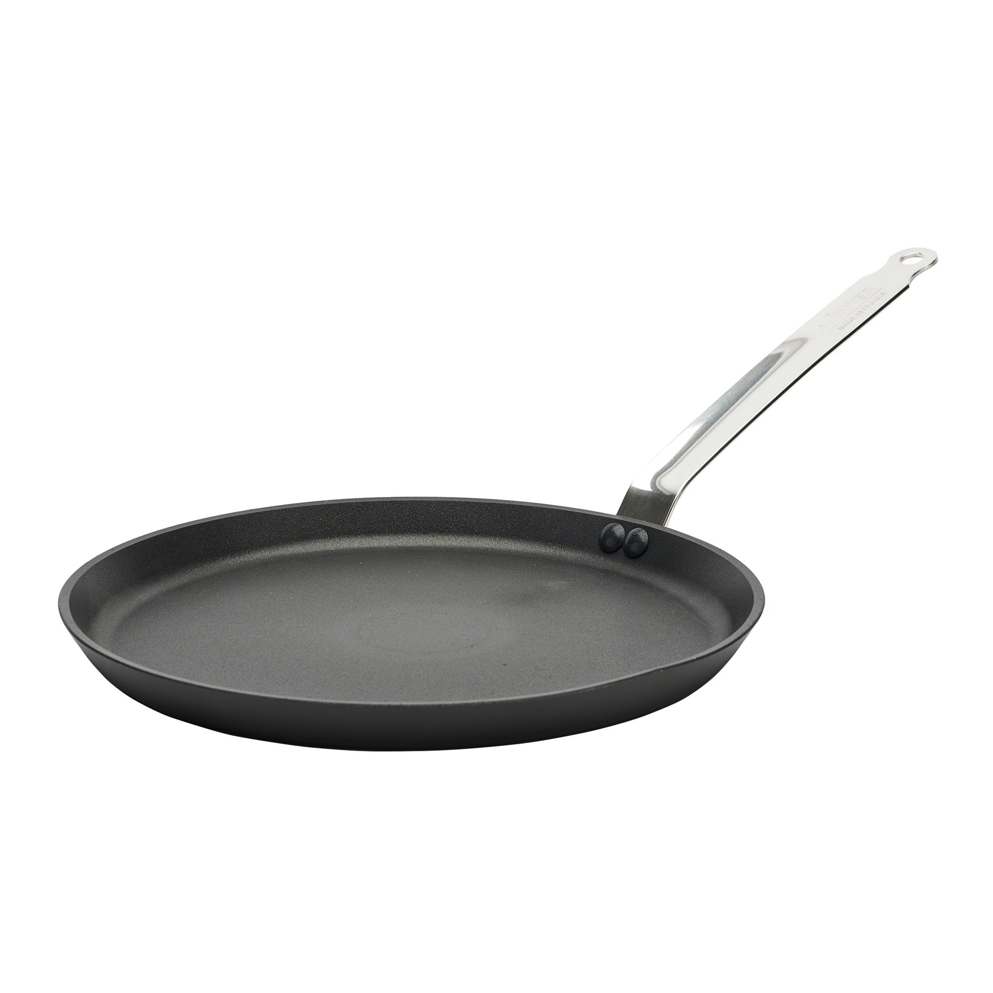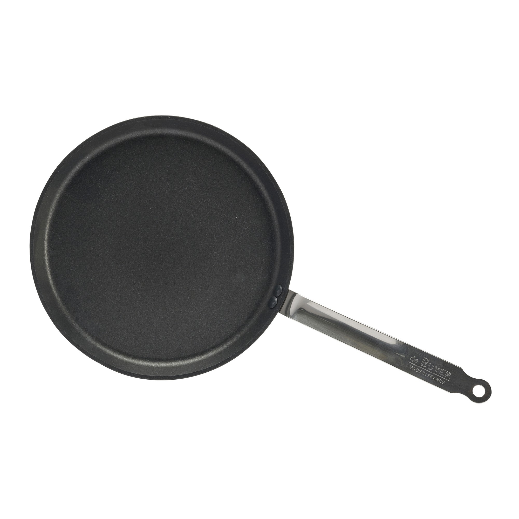 30 cm átmérőjű palacsintaserpenyő, tapadásmentes bevonattal ellátott alumíniumból, de Buyer. gyártotta