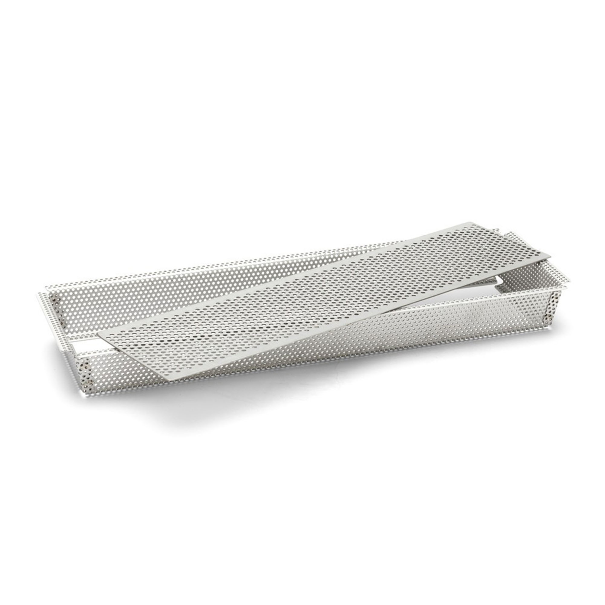 Átkerített piparkás levehető talppal, amelyet de Buyer, készített, rozsdamentes acélból, méretei 35 x 10,5 x 3,5 cm, sütőpapírral együtt.